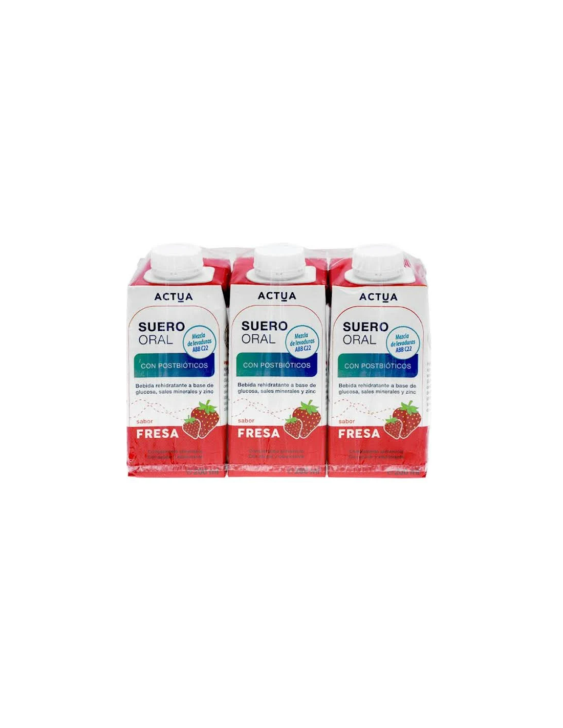 Agua, glucosa, citrato de sodio, cloruro de sodio, cloruro de potasio, mezcla ABB C22 (Saccharomyces boulardii, Saccharomyces cerevisiae, Kluveromyces marxianus, maltodextrina, sulfato de zinc, antiaglomerante (dioxido de silicio)), aromas, edulcorante (acesulfame K), regulador de acidez (ácido cítrico).