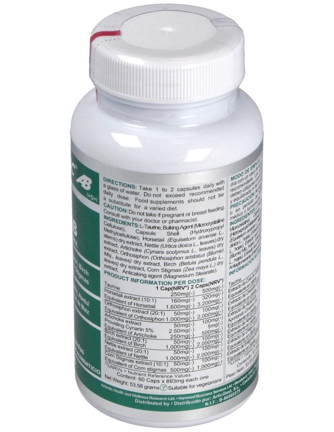 RE-7 de Airbiotic® es una fórmula exclusiva que combina 7 nutrientes a unas concentraciones muy superiores a las habitualmente presentes en productos similares. Aporta 250 mg del aminoácido taurina, 1.600 mg de cola de caballo (Equisetum arvense), 1.000 mg de ortosifón (Orthosiphon stamineus), 1.250 mg de alcachofa (Cynara scolymus), 1.000 mg de abedul (Betula pendula), 1.000 mg de ortiga (Urtica dioica) y 50 mg de estigmas de maíz (Zea mays). Hay muchos productos parecidos, pero no encontrarás ninguno con esta selección de nutrientes y a estas concentraciones. Si buscas lo mejor, tienes que probarlo. Ingredientes activos por cápsula: