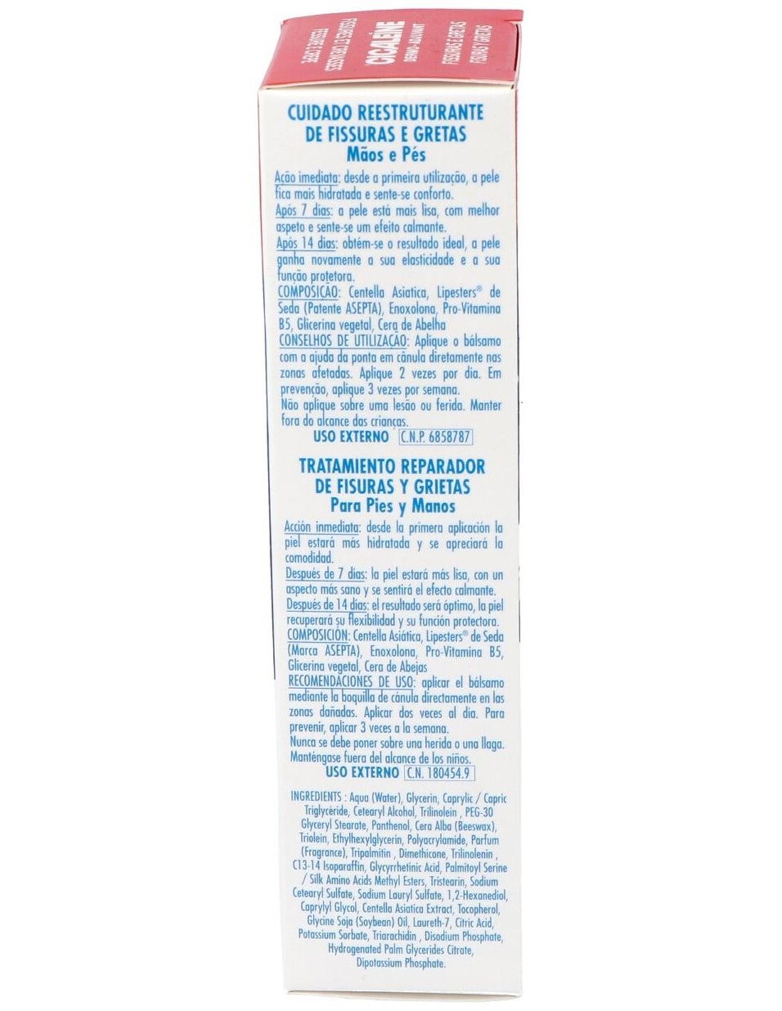 Repara y protege las zonas agrietadas y fisuradas de los pies y de las manos. Desde la primera aplicación, su fuerte poder hidratante devuelve la elasticidad y el confort a la piel en solo 7 días de uso, el efecto calmante es notable y el número de grietas y fisuras se reduce significativamente. Después de 14 días el resultado es óptimo: una piel totalmente mejorada y elástica que recupera toda su función protectora.