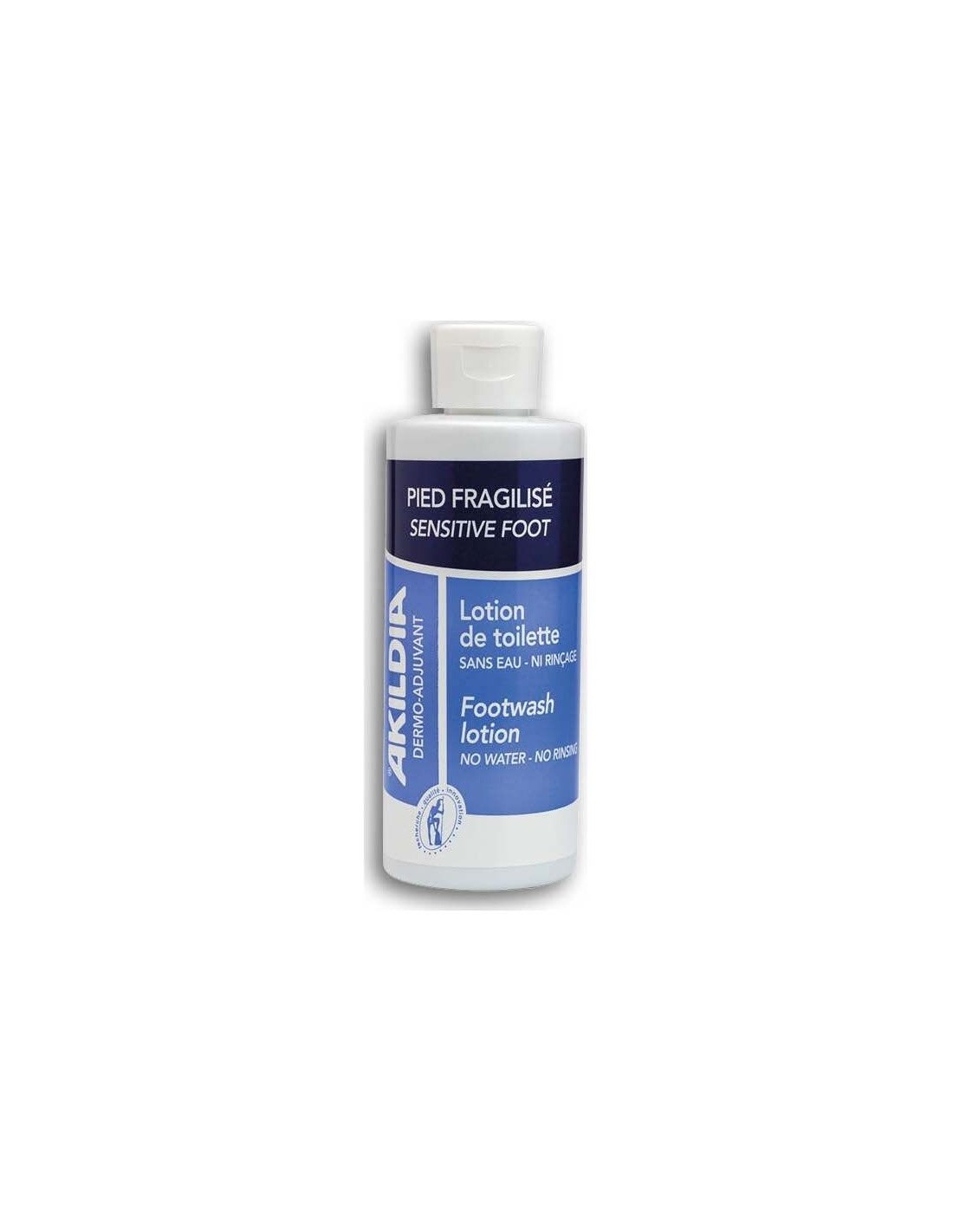 Limpiar los pies con un guante o un algodón impregnado de loción. Insistir entre los dedos. Secar los pies suavemente sin frotar.