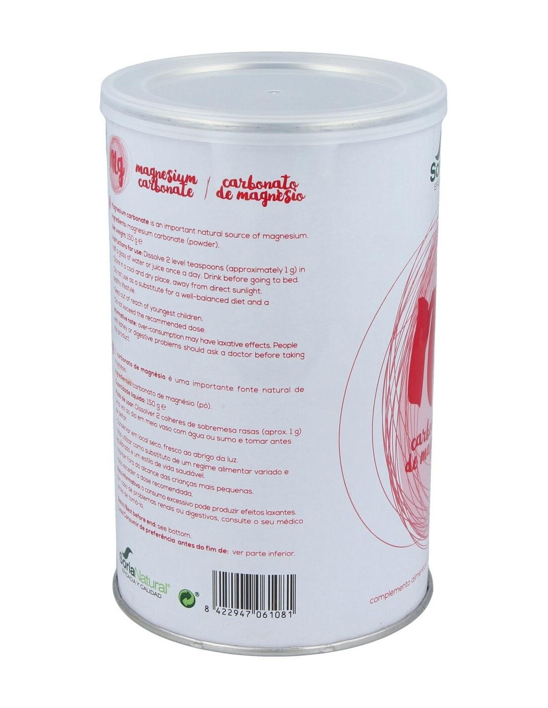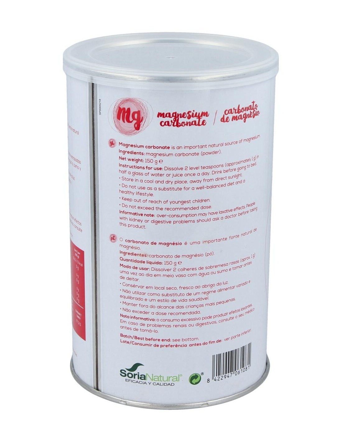 El Carbonato Magnesio 150Gr de Soria Natural ofrece una opción natural para quienes desean complementar su dieta con magnesio, adaptándose a diversas formas de consumo y necesidades diarias.