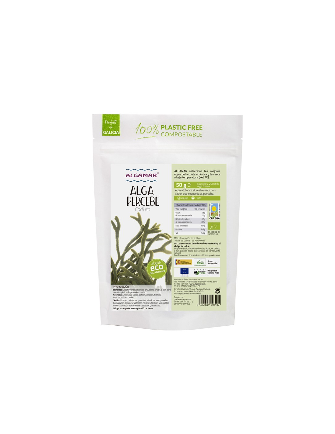 ALGAMARIngredientes:Alga atlántica silvestre seca con sabor que recuerda al percebe.Valor nutricional por 100 gramos: