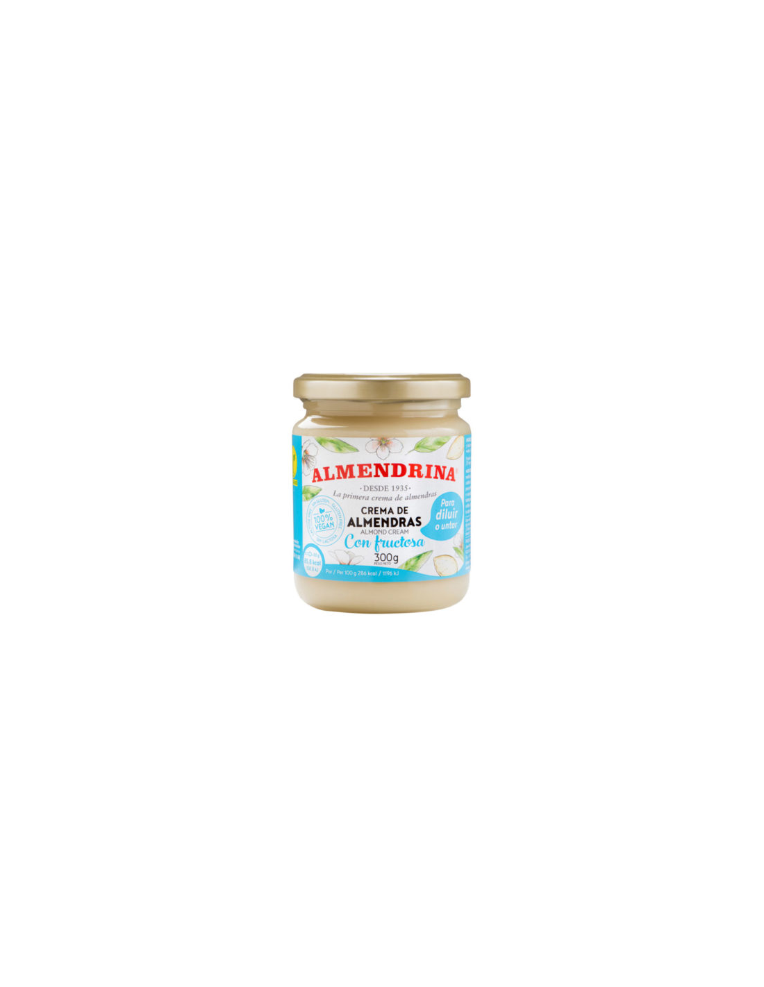 Almendrina Crema Almendras Leche sin Azúcar 300g es una crema de almendras tradicional con valor ecológico añadido. Elaborada con agua y almendras ecológicas, endulzada con fructosa. La almendra es un fruto rico en carbohidratos y magnesio que ayuda a mantener la salud de los dientes y contribuye a reducir el estrés y el insomnio. Con potasio, vitamina E, A y B, calcio, hierro y zinc. Apta para veganos.