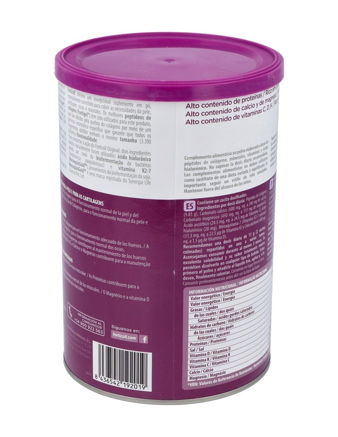 El Colageno Bioactivo Forticoll de Almond se presenta en un envase práctico que conserva la frescura del producto. Su fórmula está pensada para integrarse fácilmente en bebidas o preparaciones diarias, adaptándose a distintos estilos de vida y rutinas de cuidado personal.