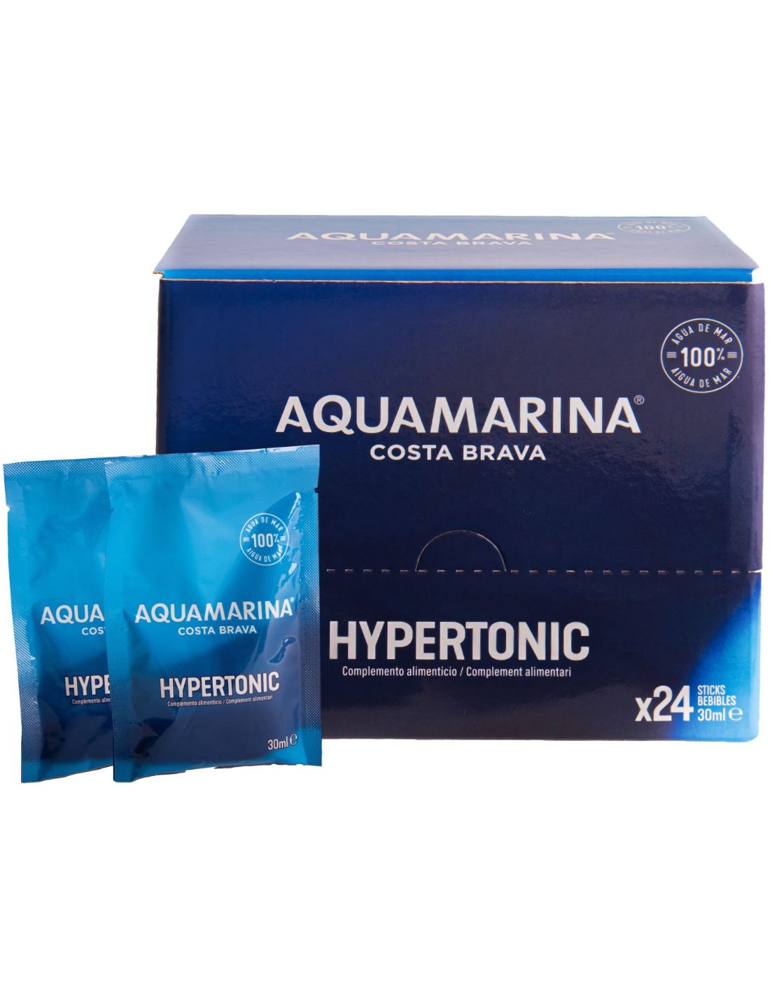 Ingredientes:Agua de mar 100% microfiltrada.Modo de empleo:Apto para cocinar, descongelar productos marinos, preparar ensaladas, etc. Para preparar una bebida isotónica diluir 1 parte de agua hipertónica en partes de agua natural, manantial, zumo o infusión.Presentación:Envase de 24 sobres de 30 ml.Recomendaciones y advertencias:No contiene aditivos, alérgenos, ni organismos modificados genéticamente.