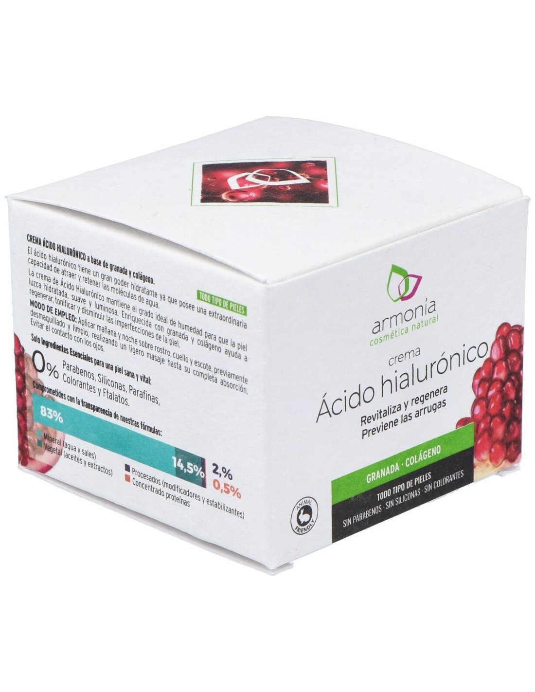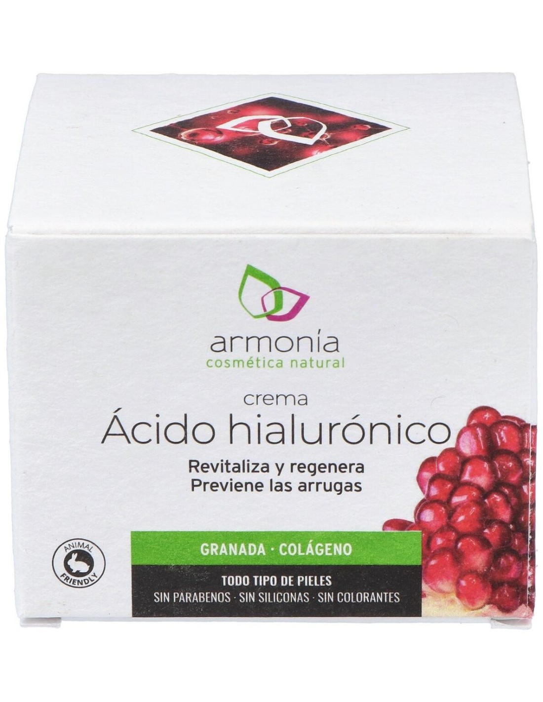 ARMONIACrema Ácido Hialurónico a base de granada y colágeno. El ácido hialurónico tiene un gran poder hidratante ya que posee una extraordinaria capacidad de