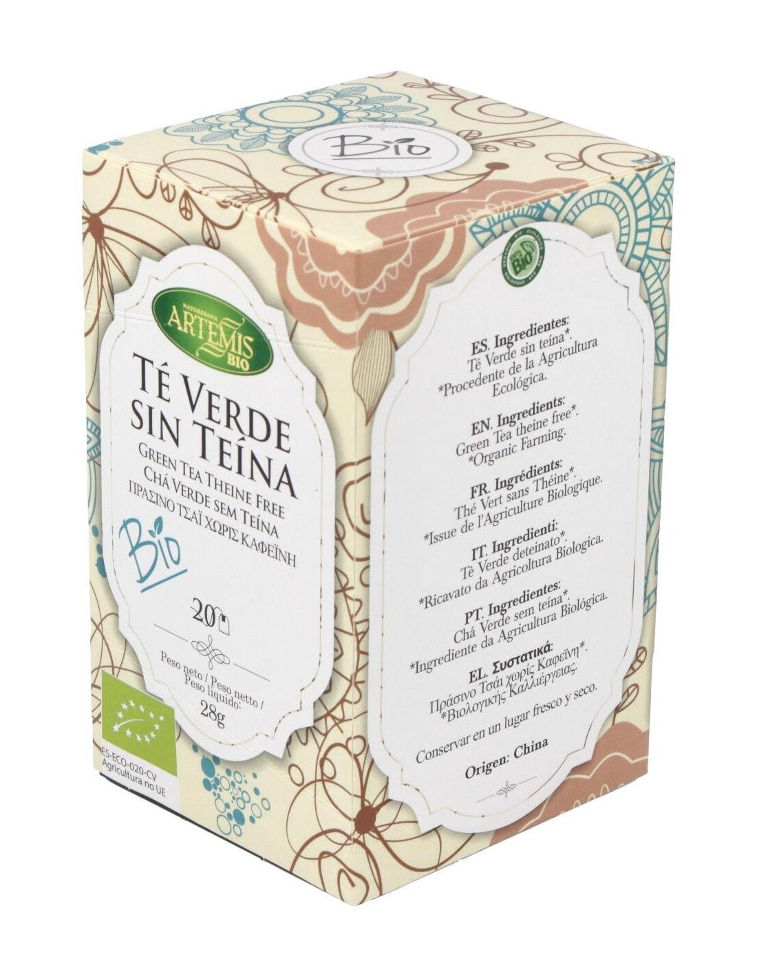 Te Verde Sin Teina Infusion 20Bolsitas. Bio de Artemis Bio