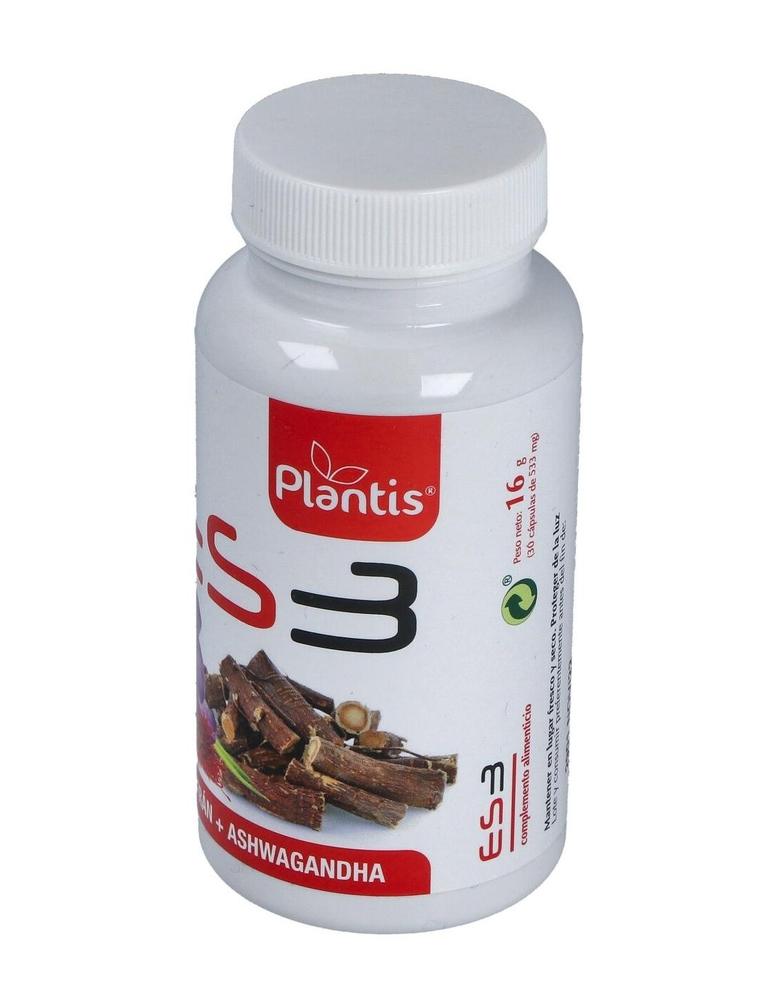 Las cápsulas de Estrés Plantis, formuladas con estigmas de Azafrán y raíz de Ashwangandha, ayudan a conseguir una relajación mental y física proporcionado el equilibrio necesario para que la mente este en un estado positivo permitiendo afrontar los retos diarios de una manera optimista y preparando al organismo para un descanso nocturno adecuado.ES3 es la alternativa natural que ayuda a gestionar el stress, disminuir la tensión, la ansiedad y a mejorar el humor a través del control de las emociones.El azafrán de ES3 es de origen español (Castilla-La Mancha) y se ha obtenido mediante una técnica patentada dando lugar a Affron® que es el único extracto natural de azafrán concentrado en Lepticrosalidos®.Los Lepticrosalidos ® son los principales componentes bioactivos relacionados con la prevención de trastornos depresivos, y también responsable de las propiedades organolépticas del azafrán.a Ashwangandha de ES3, es KSM-66® el extracto de mayor concentración de raíz de Withania somnífera L. Se ha obtenido mediante un proceso de extracción basado en los principios Green-Chemistry, sin utilizar alcohol u otros disolventes químicos. Durante 4000 años, se ha utilizado la raíz de Ashwagandha en la tradición india de Ayurveda para reforzar la salud general y el bienestar.Composición activa por cápsula: