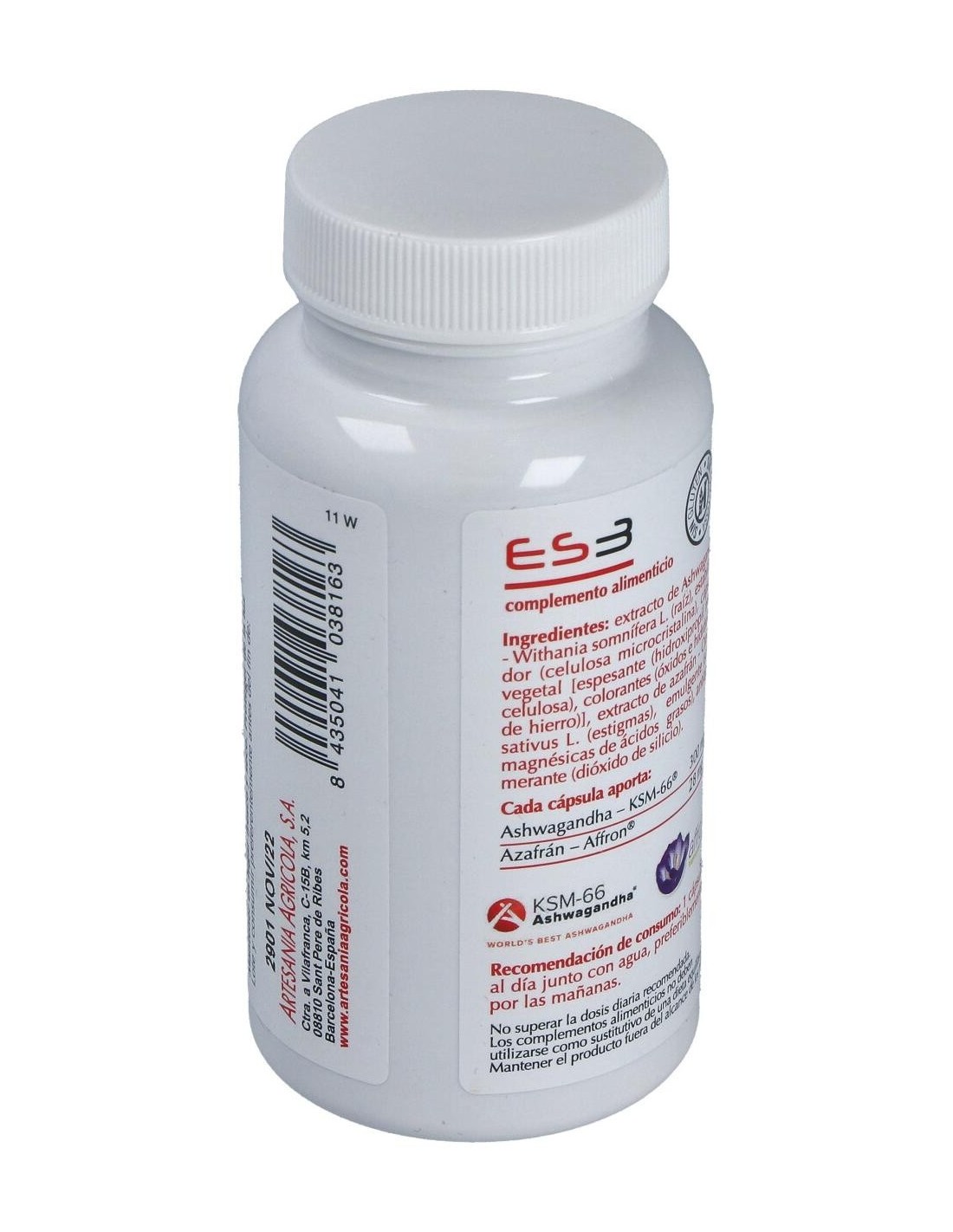 Ingredientes:Extracto de Ashwagandha - Withania somnífera L. (raíz), estabilizador (celulosa microcristalina), cápsula vegetal [espesante (hidroxipropil metil celulosa), colorantes (óxidos e hidróxidos de hierro)], extracto de azafrán - Crocus sativus L. (estigmas), emulgente (sales magnésicas de ácidos grasos), antiaglomerante (dióxido de silicio).Modo de empleo:Tomar 1 cápsula al día junto con agua, preferiblemente por las mañanas.Presentación:Envase de 30 cápsulas.