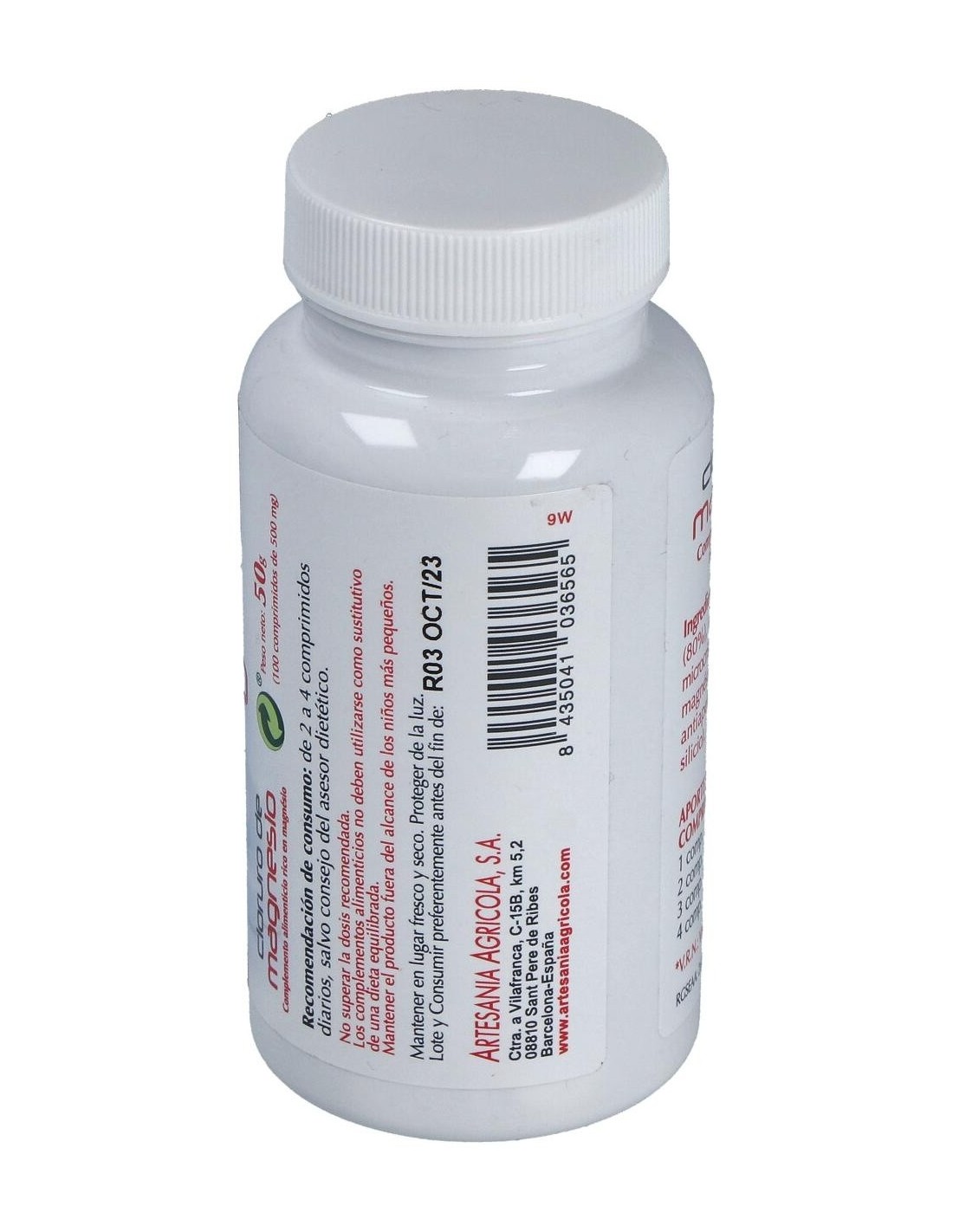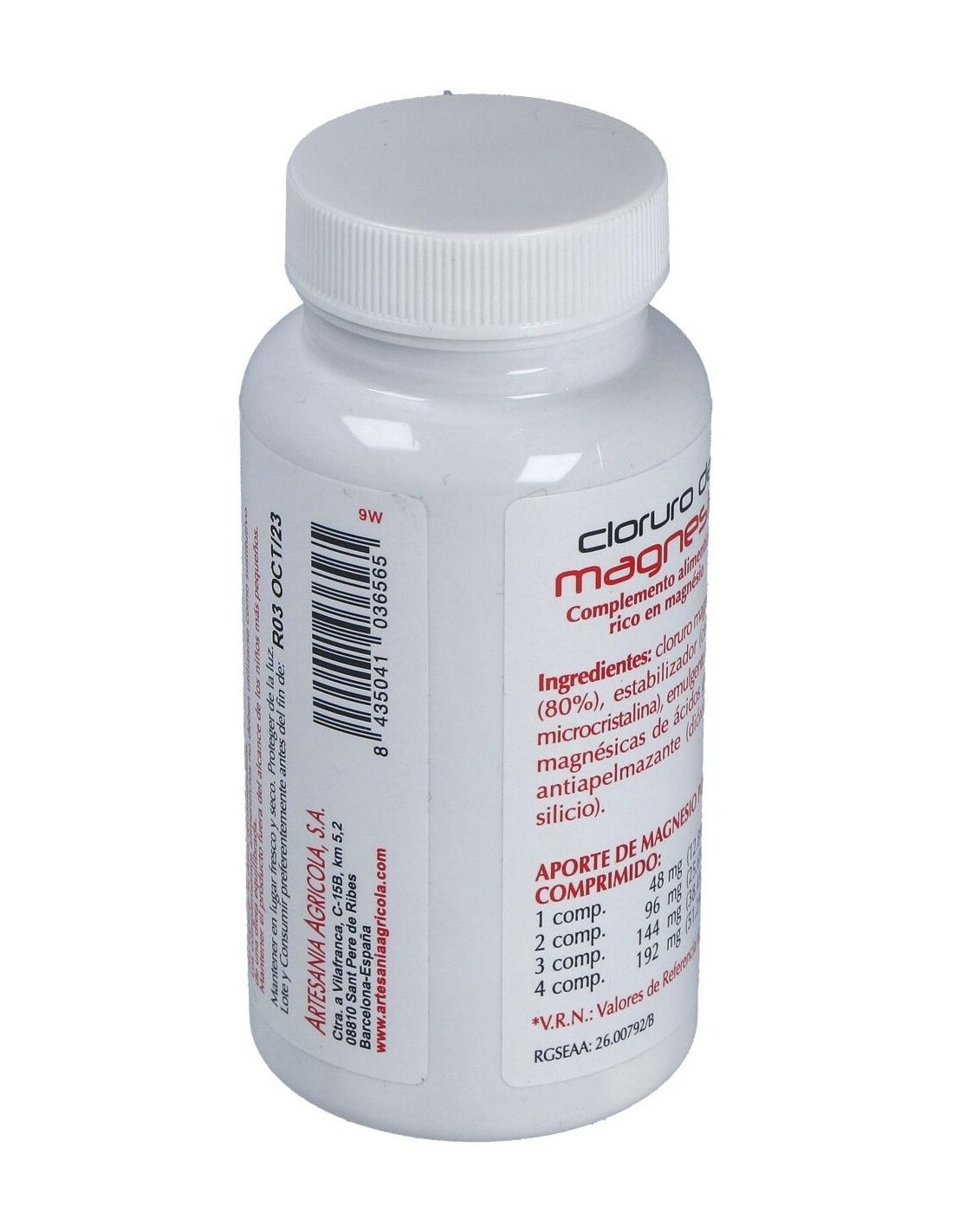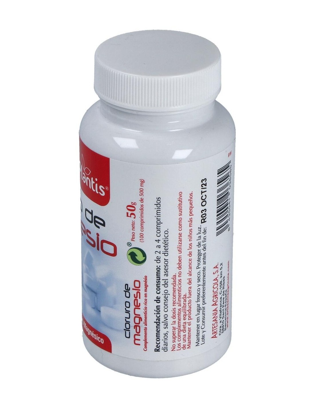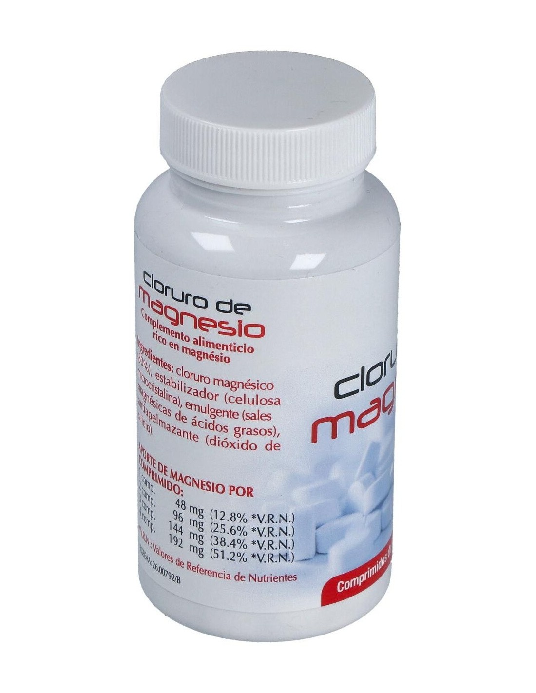 El magnesio es un elemento con mucha presencia en nuestro organismo y es indispensable para la correcta asimilación del calcio y la vitamina C; también es necesario para activar numerosas enzimas y vitaminas del grupo B.El magnesio interviene en la síntesis de las proteínas, en la excitabilidad de los músculos y en la liberación de energía. El magnesio equilibra el sistema nervioso central (acción sedante), aumenta la secreción de la bilis e interviene en la secreción y en la acción de la insulina.El magnesio es necesario y su déficit puede provocar falta de memoria, dificultades para concentrarse y por tanto puede disminuir la capacidad de retención, también puede propiciar un estado de excitación que desemboca en situaciones de stress.Composición activa por comprimido:400 mg de cloruro magnésico (48 mg de magnesio).Ingredientes:Cloruro magnésico (400 mg/comp.), estabilizador (celulosa microcristalina), emulgente (sales magnésicas de ácidos grasos), antiapelmazante (dióxido de silicio).Modo de empleo:Tomar de de 2 a 4 comprimidos diarios.Presentación:Envase de 100 comprimidos.