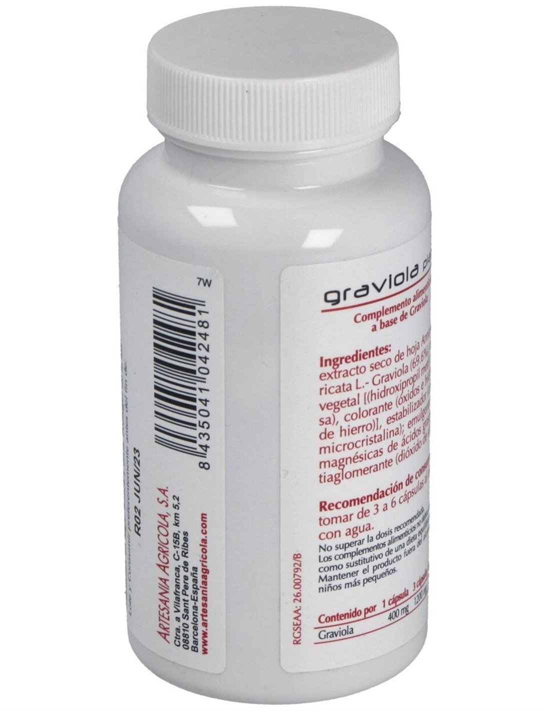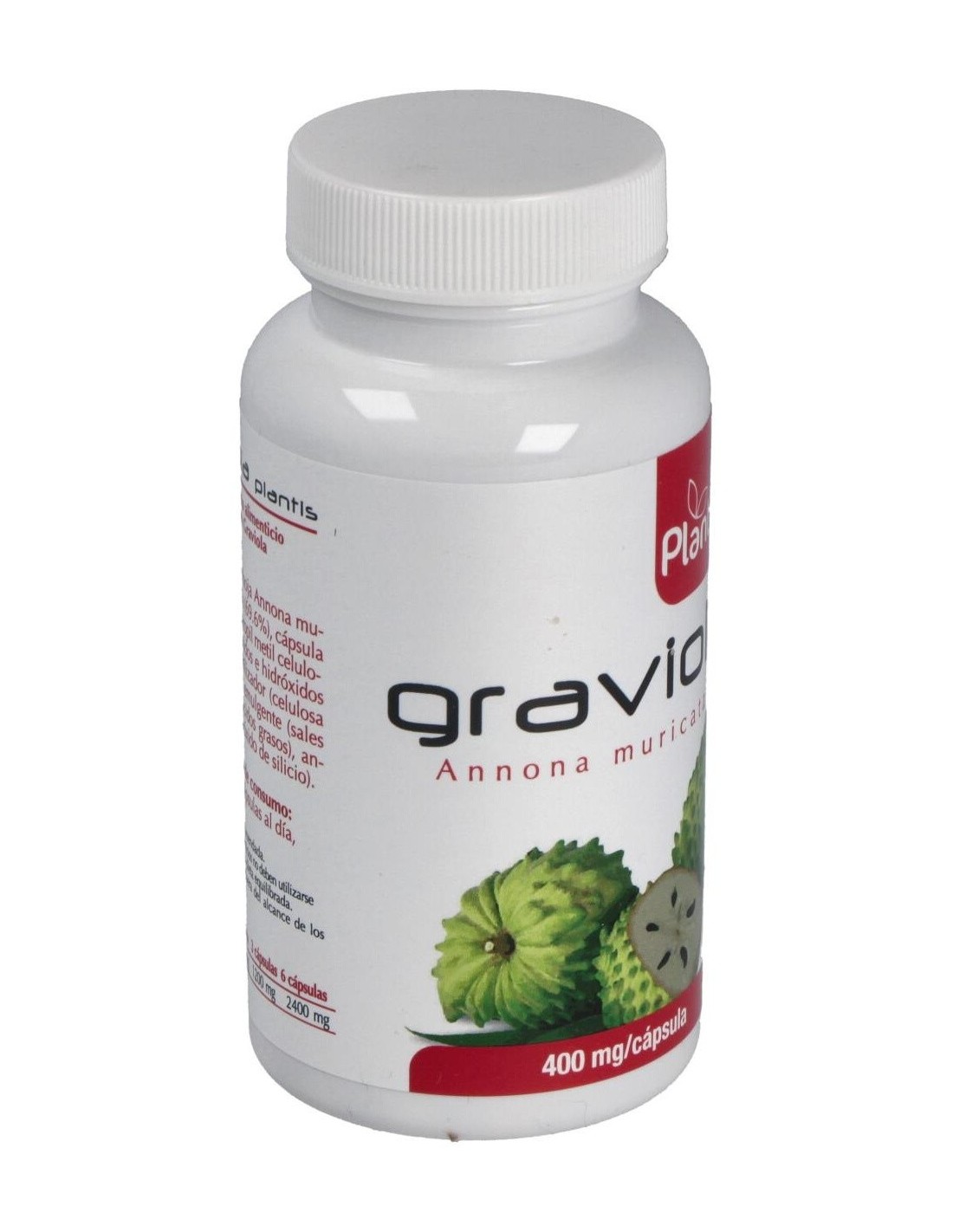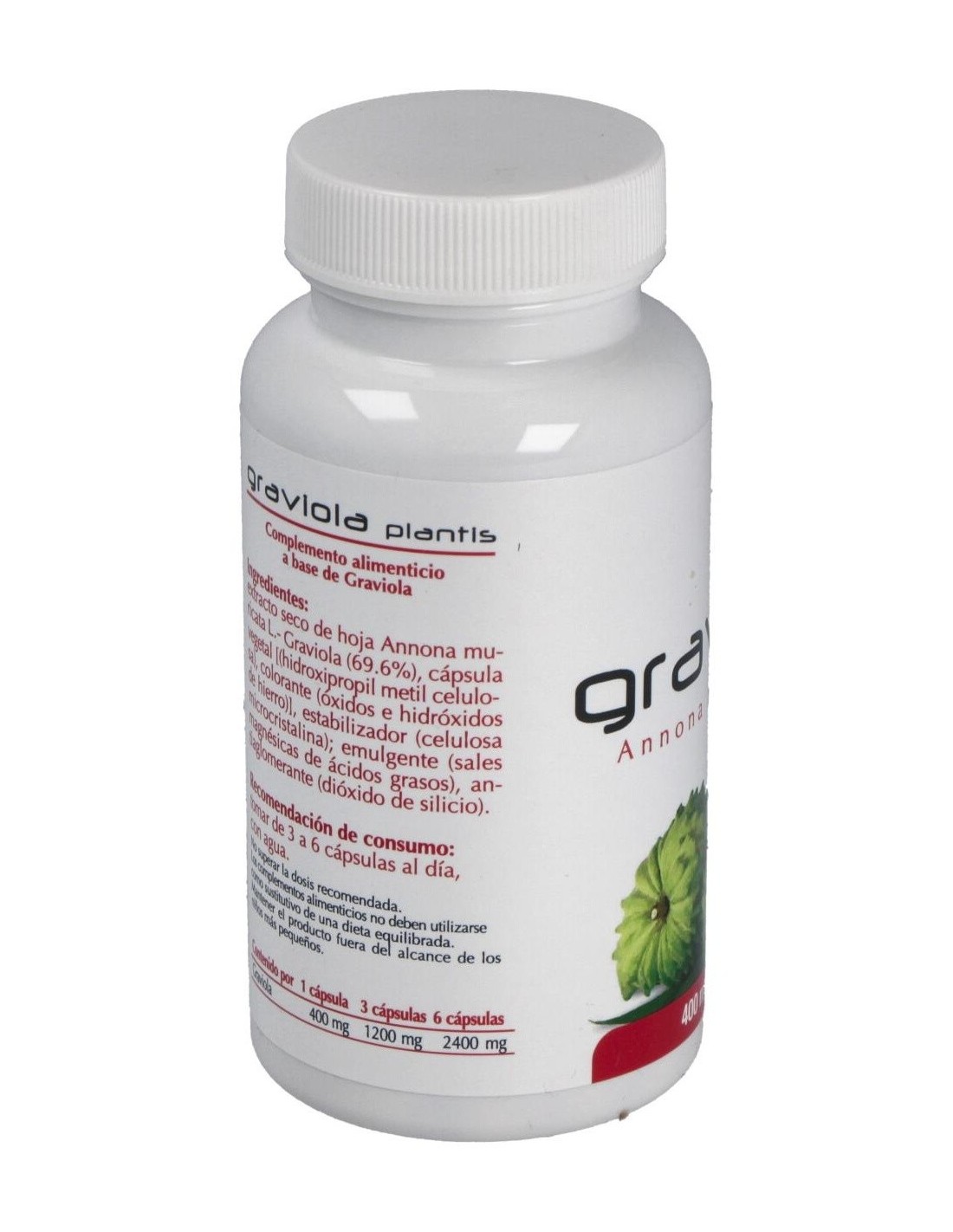 La graviola (Annona muricata) también conocida como guanabana es un árbol cuyo fruto es parecido a la chirimoya, su pulpa es blanda y de color blanco, su textura carnosa, cremosa y jugosa, su sabor es aromático y ácido. La graviola es rica en carbohidratos, fibra, potasio, sodio, magnesio, fósforo, hierro y vitamina C.La graviola se conoce desde el Perú prehispánico y se ha usado tradicionalmente en casos de diabetes, raquitismo, catarros, indigestión y parasitosis intestinal por sus propiedades astringentes, depurativas y digestivas.Más recientemente, diversas investigaciones han sacado a la luz que las hojas de Graviola tienen mayor riqueza en ácido ascórbico, ácido láctico y málico que el fruto como también una mayor cantidad de hierro, fósforo, calcio y vitaminas A, B1 y B.; sin embargo es su riqueza en acetogeninas, consideradas un principio activo anticancerígeno o citostatico, que ha abierto la posibilidad de su utilización como coadyuvante en tratamientos tumorales.Composición activa por cápsula:400 mg de graviola.Ingredientes:Extracto seco de hojas de Annona muricata L- Graviola (69.6%), cápsula vegetal [(hidroxipropil metil celulosa), colorante (óxidos e hidróxidos de hierro)], estabilizador (celulosa microcristalina); emulgente (sales magnésicas de ácidos grasos), antiaglomerante (dióxido de silicio).Modo de empleo:Tomar de 3 a 6 cápsulas al día, con agua.Presentación:Envase de 90 cápsulas.