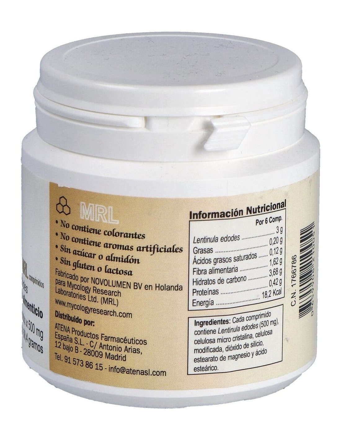 Por 1 comprimido: Lentinula Edodes............. 500 mg Celulosa microcristalina, celulosa modificada, dióxido de silicio, estearato de magnesio, ácido esteárico.