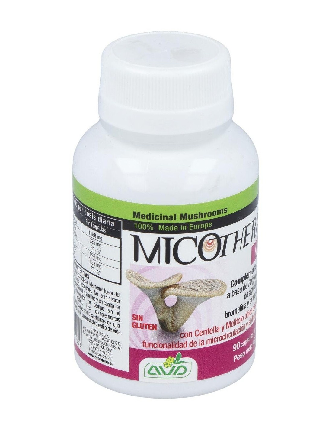 AVD REFORMComplemento alimenticio a base de Polyporus umbellatus de agricultura ecológica, bromelina y extractos vegetales Micotherapy Linfo favorece la funcion