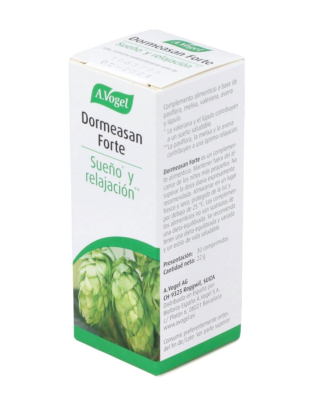 A. Vogel Dormeasan Forte 30comp es un complemento alimenticio en forma de cápsulas que contribuye a mejorar el descanso durante el sueño, ideal para levantarse fresco y con energía.
