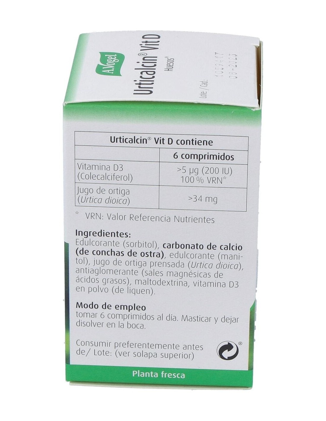 A.VOGELUrticalcin Vit.D Comp. 600 de A.Vogel es un suplemento para personas que buscan apoyar la salud ósea. Con vitamina D y calcio, contribuye al mantenimiento de huesos y dientes en condiciones normales.