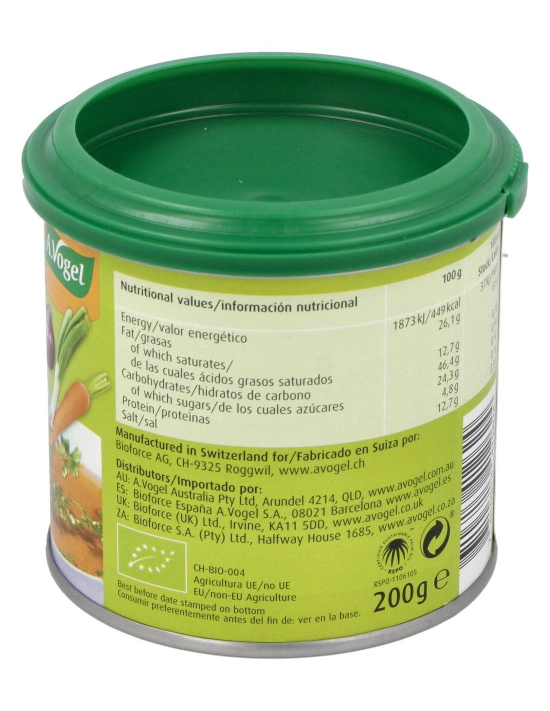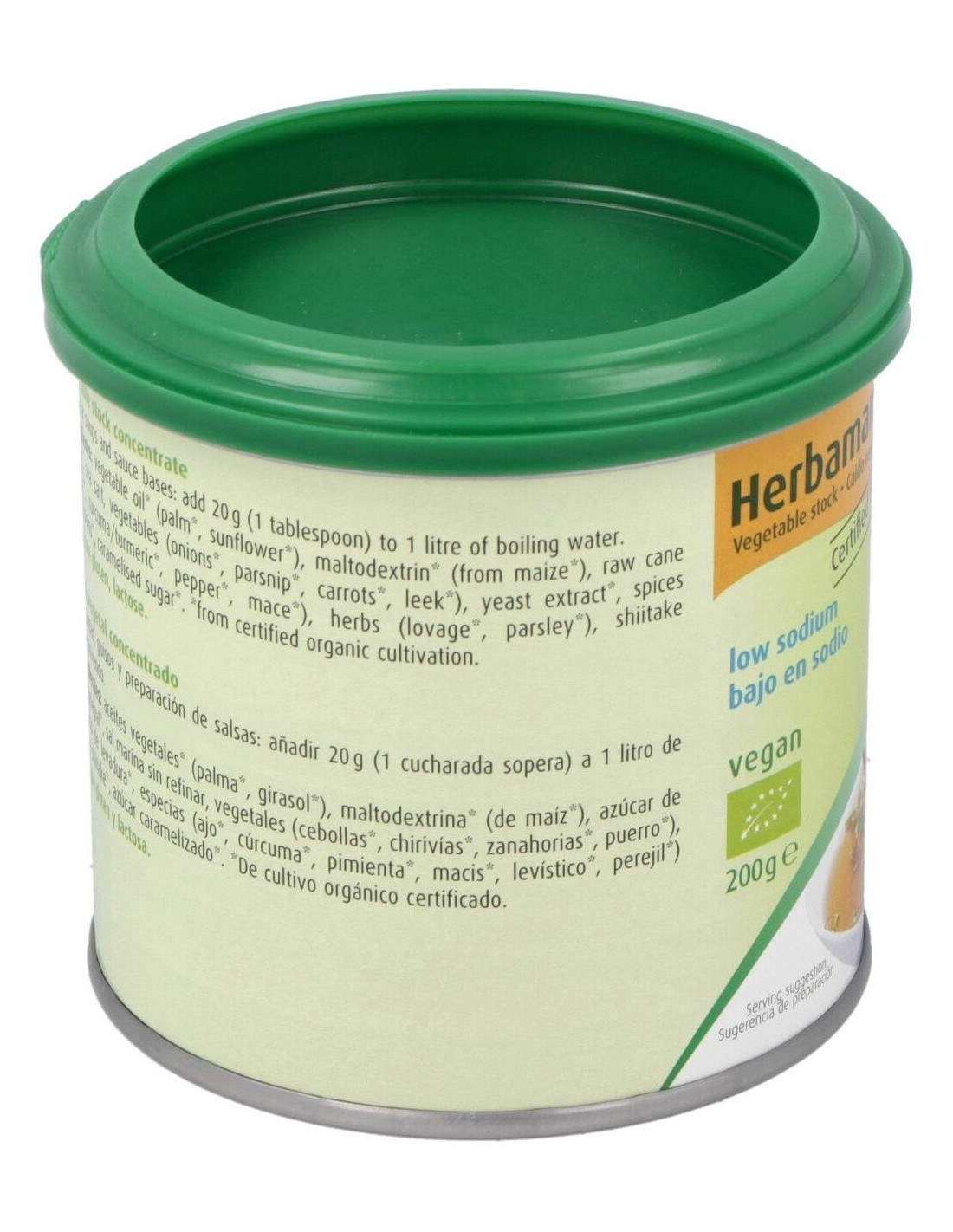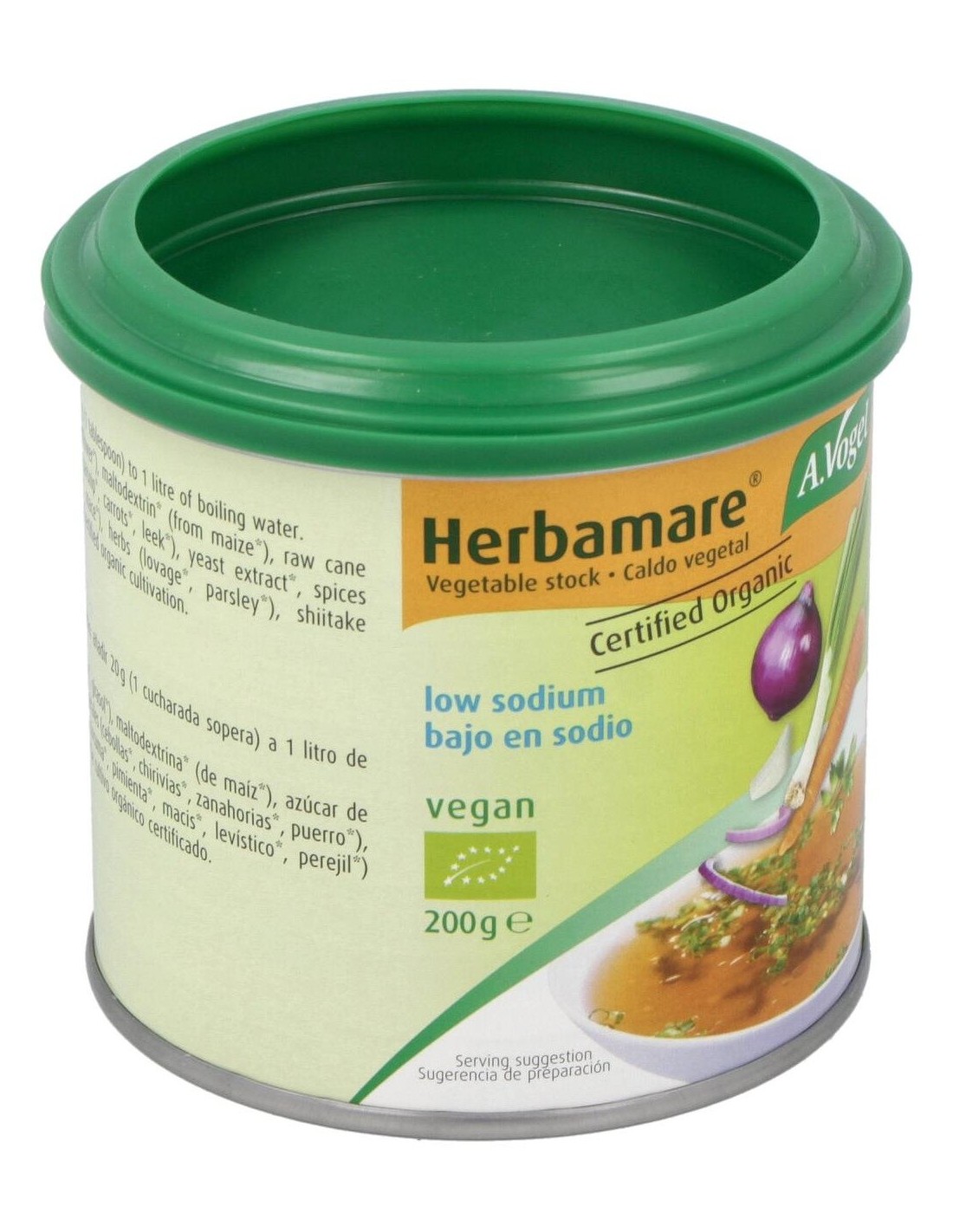 Herbamare Caldo Vegetal Bajo En Sodio Bote 200 Gr de A.Vogel ofrece una alternativa para quienes buscan un caldo vegetal con menor contenido de sodio, manteniendo un sabor equilibrado y versátil para diversas preparaciones culinarias.