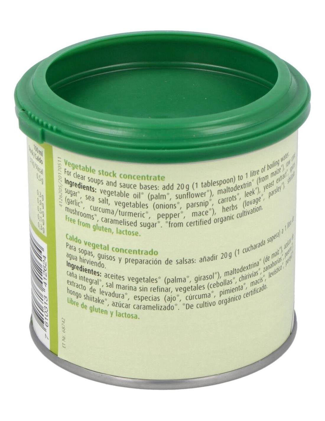 El caldo vegetal está elaborado con ingredientes seleccionados que mantienen su frescura y sabor, presentados en un envase que protege el producto de la humedad y la luz. Su composición facilita la integración en recetas caseras o profesionales, aportando un toque natural sin ingredientes artificiales.
