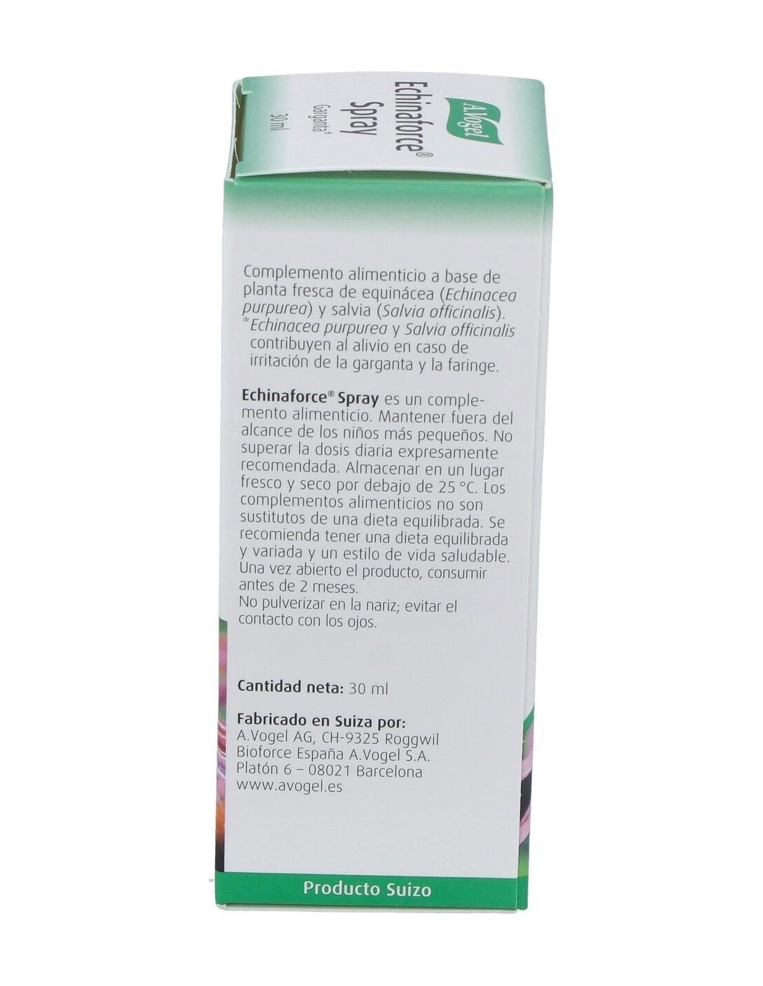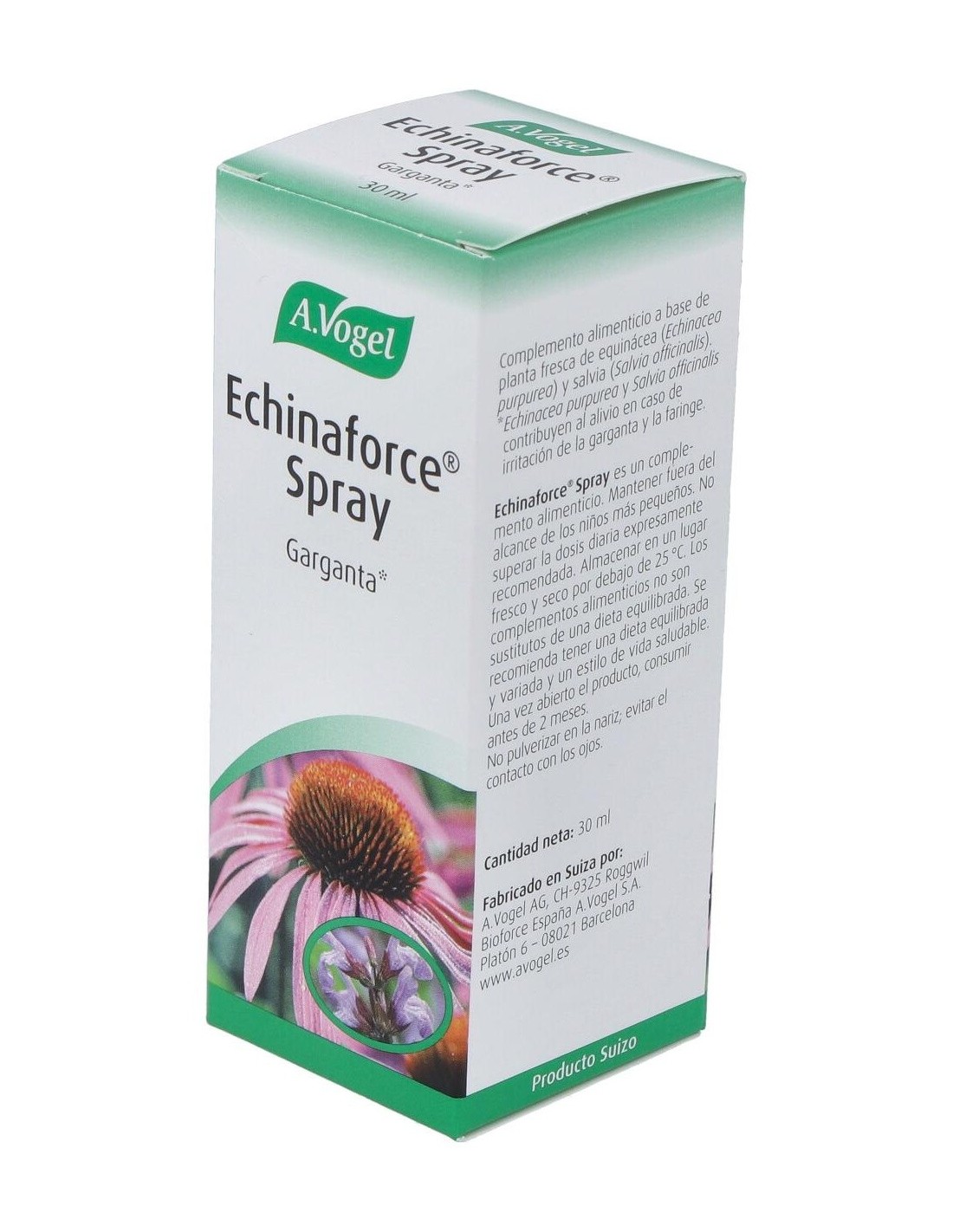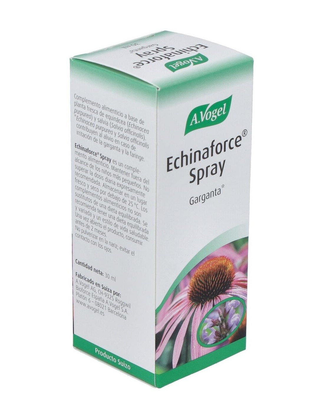 Echinaforce Spray Ml 30 de A.Vogel es un complemento diseñado para personas que buscan una opción natural para su cuidado diario. Su formato en spray facilita la aplicación, adaptándose a diferentes necesidades de uso.