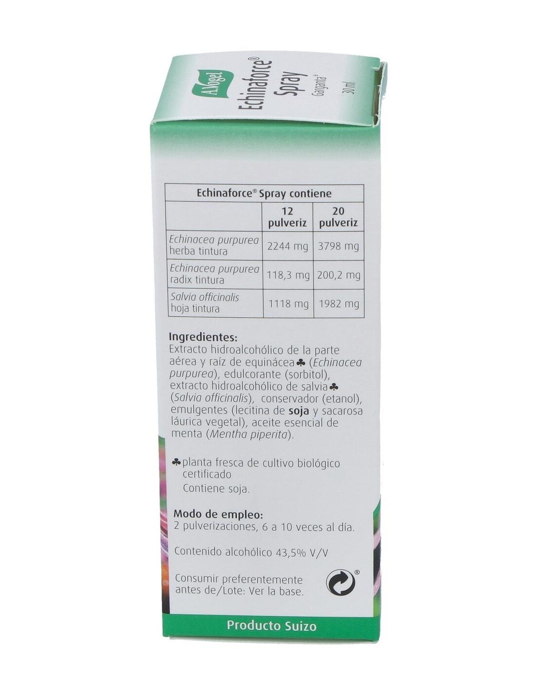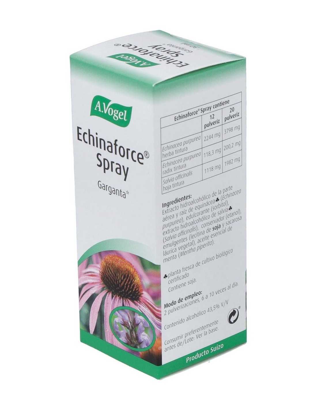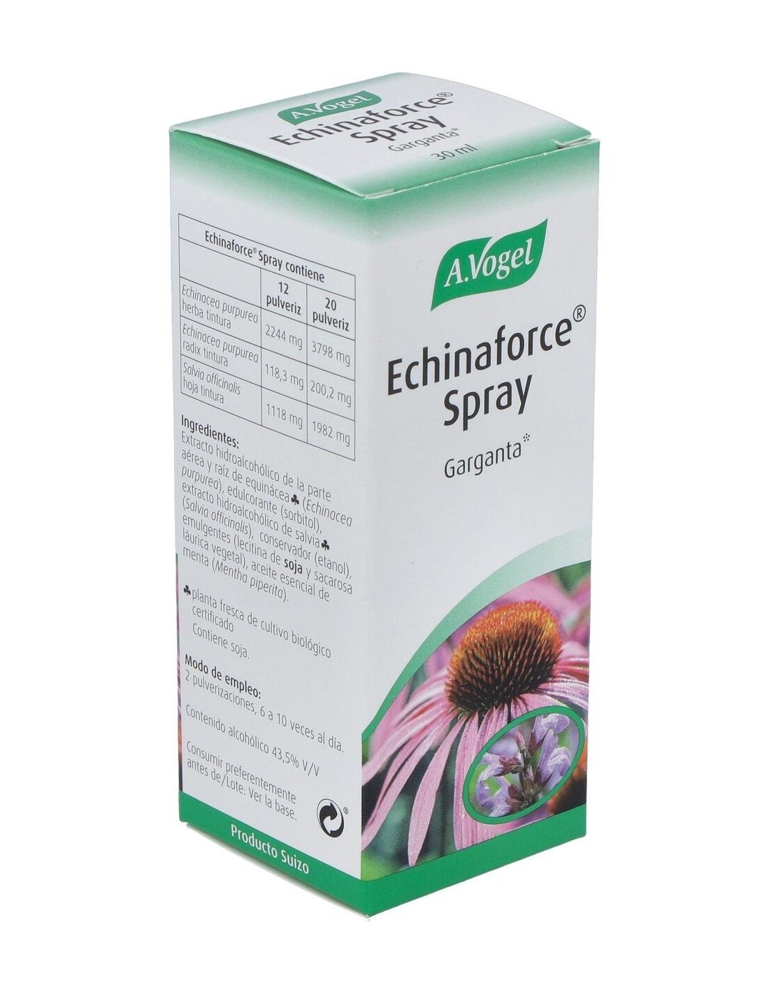 Echinaforce Spray Ml 30 de A.Vogel es un complemento diseñado para personas que buscan una opción natural para su cuidado diario. Su formato en spray facilita la aplicación, adaptándose a diferentes necesidades de uso.