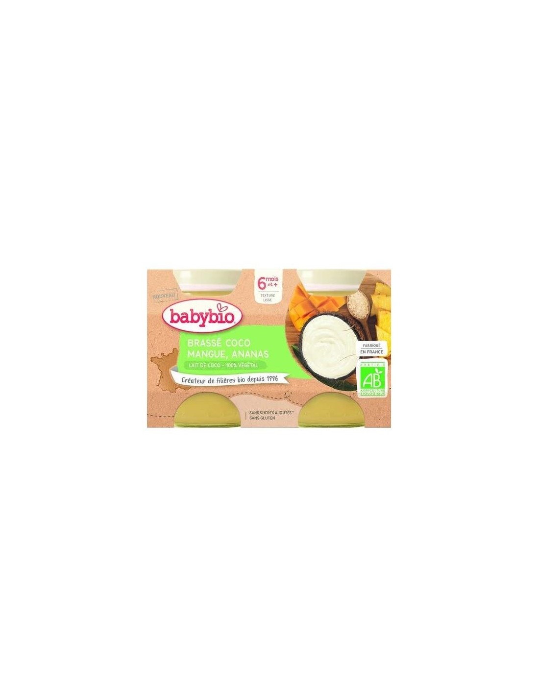 BABYBIOEl Yogur Coco Mango Piña 2X130Gr. Bio de Babybio es un yogur orgánico para bebés que aporta una combinación natural de frutas tropicales, ofreciendo una opción nutritiva y suave gracias a sus ingredientes certificados bio.