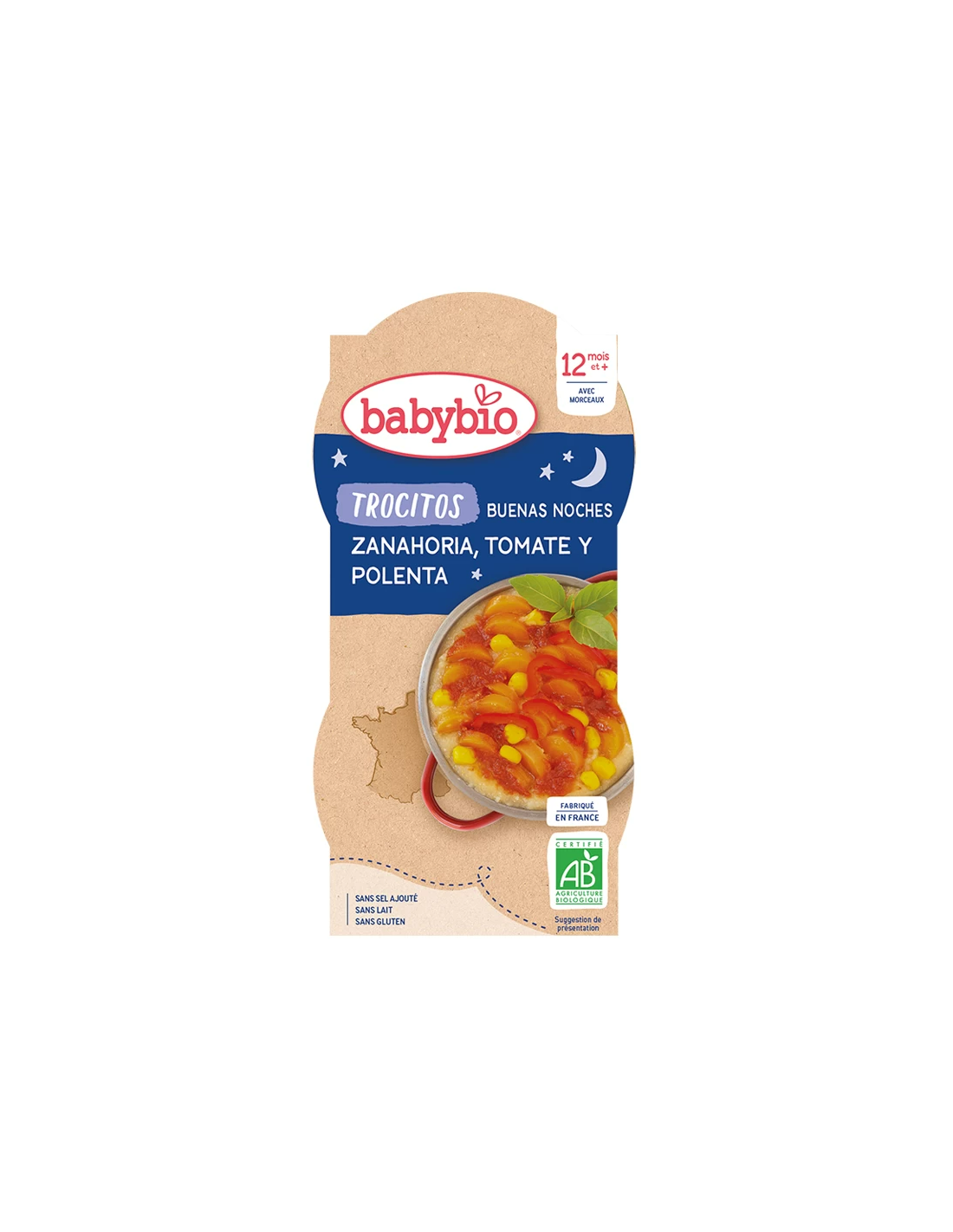 Buena Noche TROCITOS Zanahoria tomate y Polenta 2x200g de Baby Bio