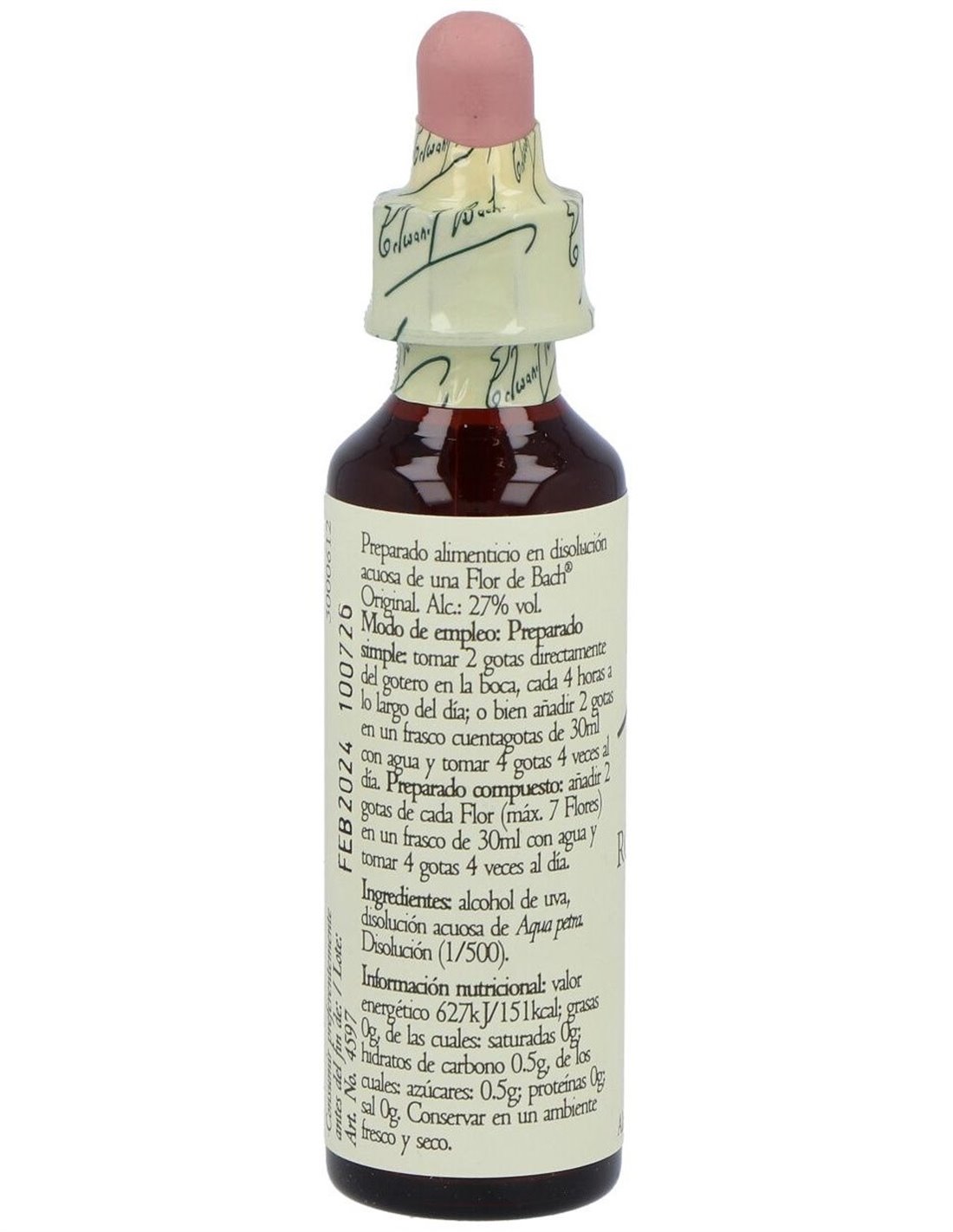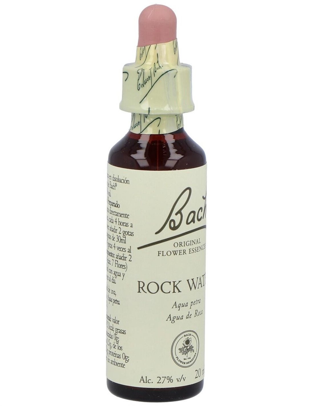 BACHEl (27) Rock Water de Bach es una esencia floral para personas que buscan flexibilidad mental, favoreciendo la adaptación al cambio mediante su fórmula natural basada en agua de manantial.