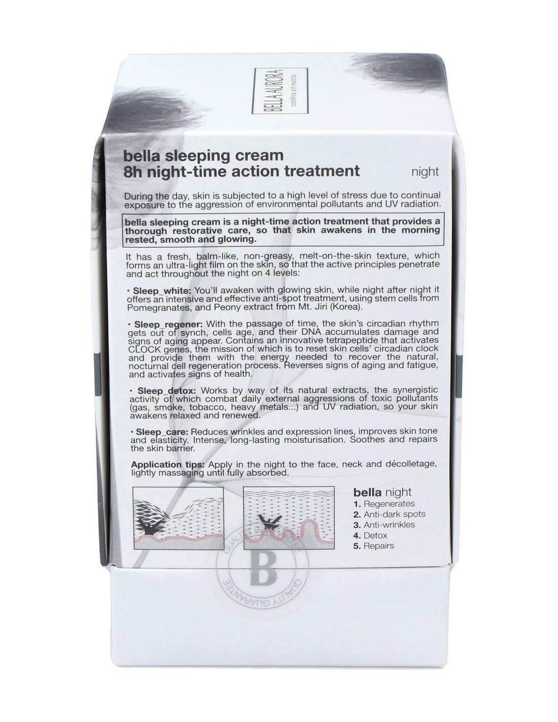 Tratamiento de acción nocturna reparador, y anti-manchas. Su textura es un bálsamo fresco y fundente, no graso, que forma una película ultra-ligera sobre la piel, para que los activos penetren y actúen a lo largo de toda la noche.