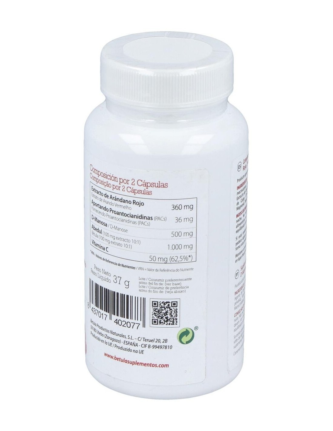 Es un complemento alimenticio a base de Arándano Rojo, D-Manosa, Abedul y Vitamina C.