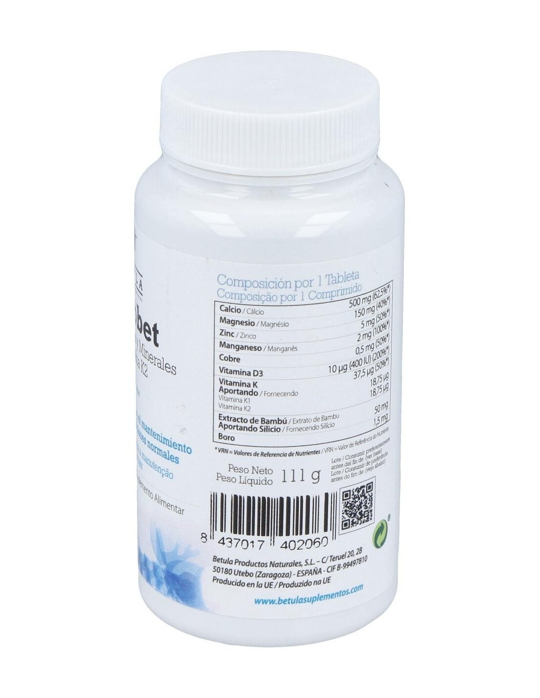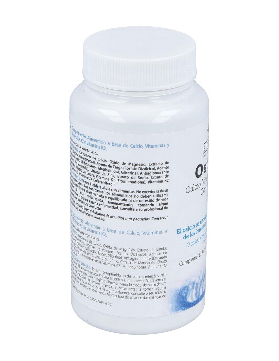 Complemento alimenticio que contiene buenos niveles de calcio, necesario para el mantenimiento de los huesos en condiciones normales. Con vitaminas D y K, magnesio, zinc, manganeso, vitamina K2 (Menaquinona), cobre, boro y silicio. El tejido óseo está en constante renovación y debe su rigidez a los cristales de hidroxiapatita (formados por calcio y otros minerales) y a proteínas como el colágeno.Apto para vegetarianos. Consultar a un médico en caso de embarazo, periodo de lactancia o toma de medicamentos.