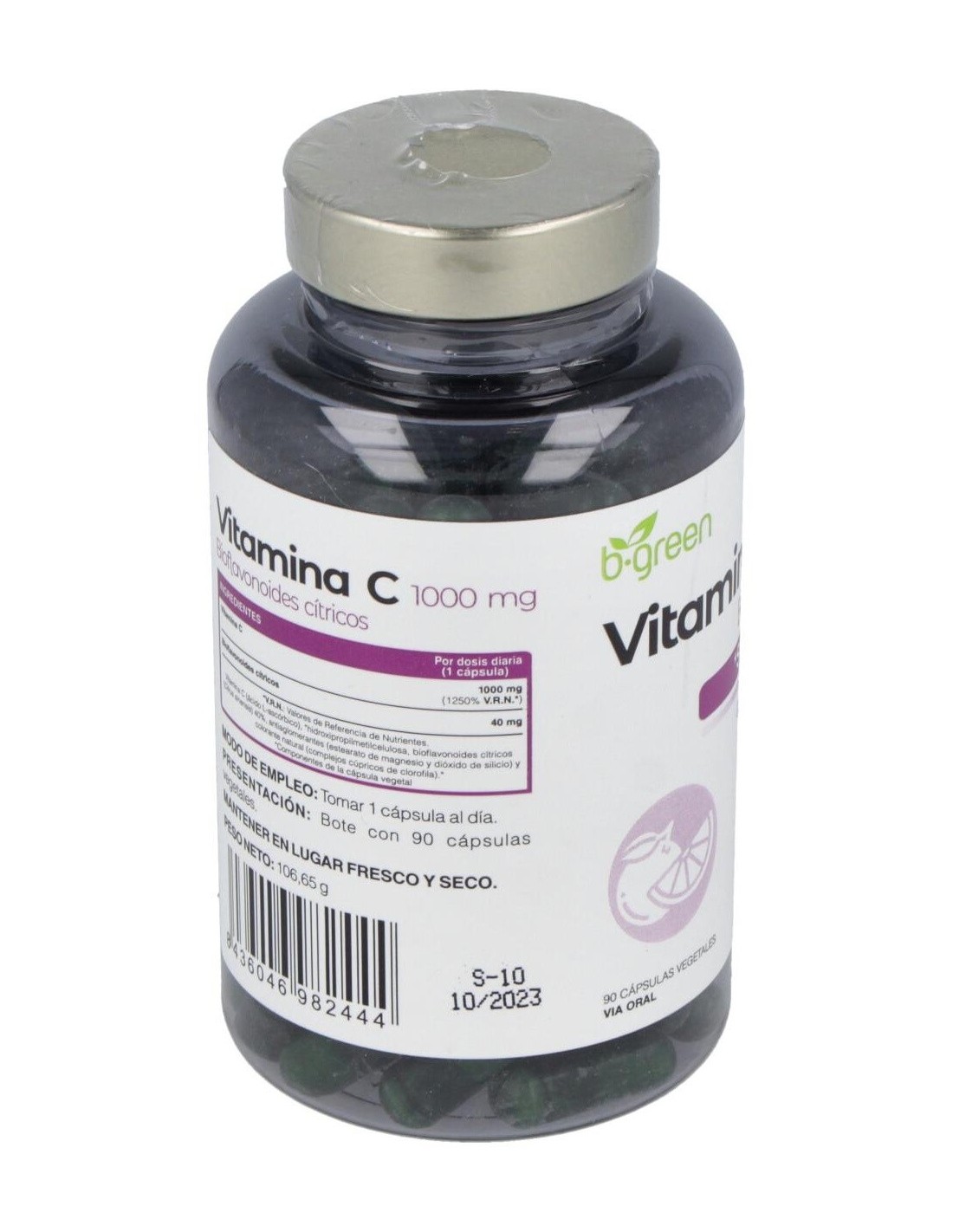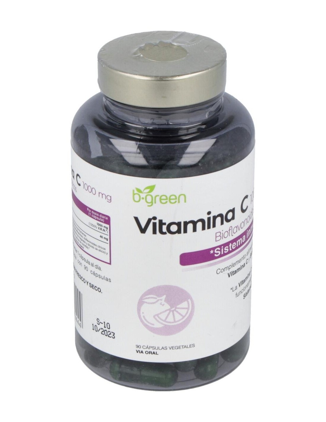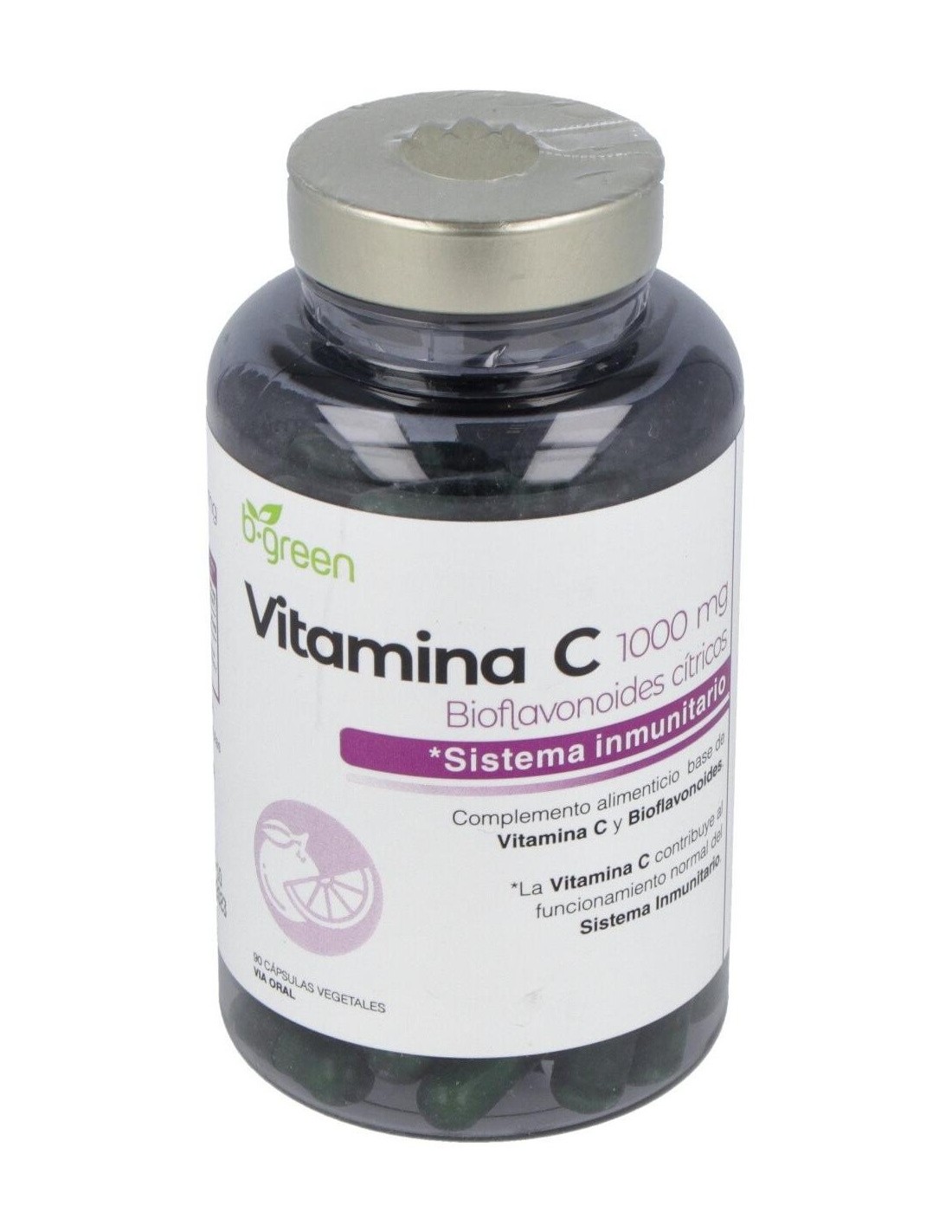 B.GREEN (LAB. LEBUDIT)Complemento alimenticio en formato cápsula, elaborado a base de vitamina C y bioflavonoides cítricos, que contribuye al funcionamiento normal del sistema inmunitario.Los bioflavonoides, conocidos también como vitamina P, son moléculas de origen vegetal y en este complemento son extraídos de la parte de color blanco de la piel de los cítricos.