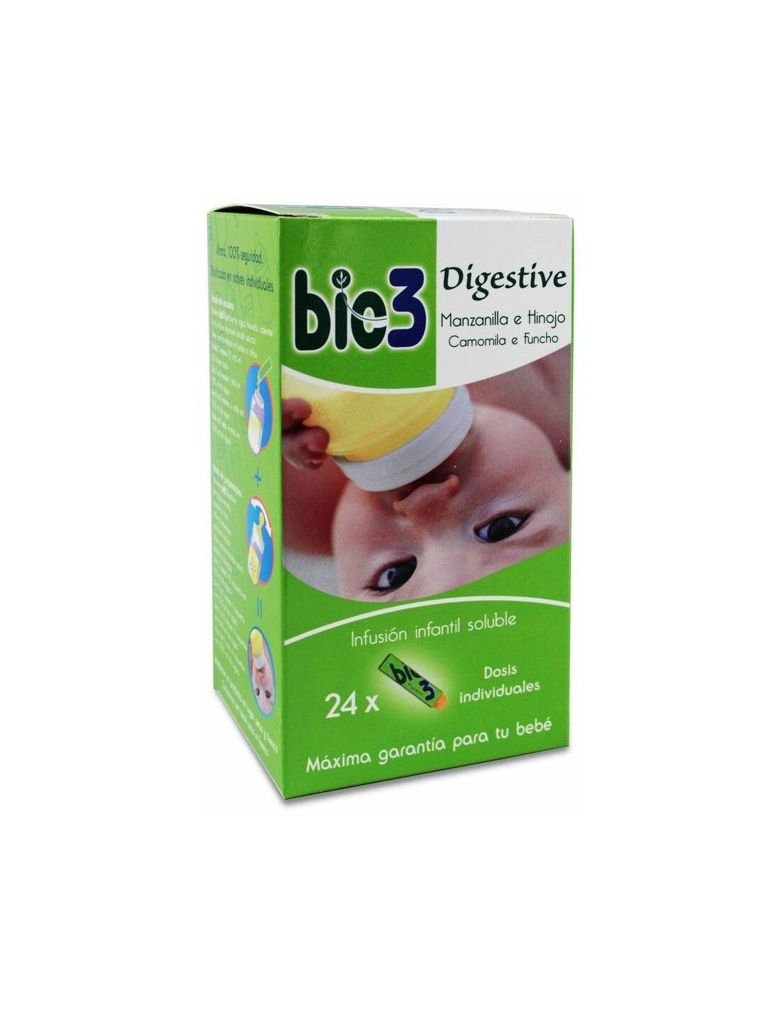 Bie3 Digestive Infantil es una infusión soluble especialmente diseñada para aliviar las digestiones en lactantes y niños pequeños. Para su composición se han necesitado el corazón de flores de manzanilla silvestre y con hinojo.