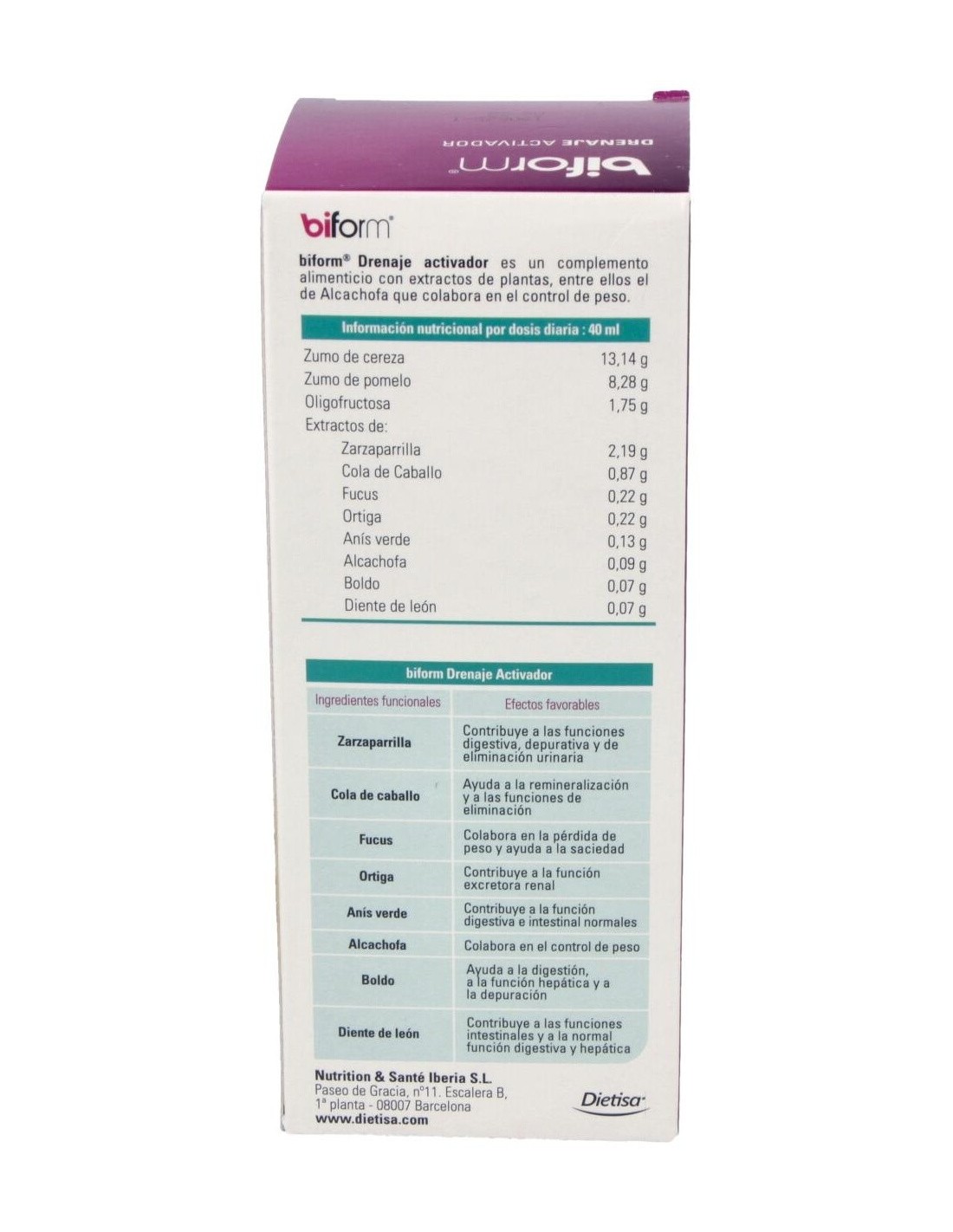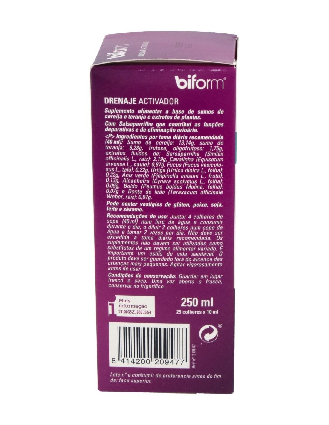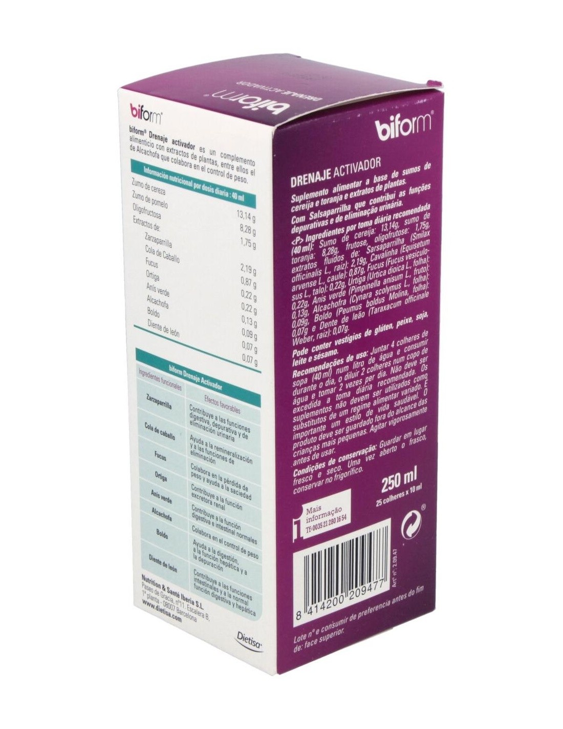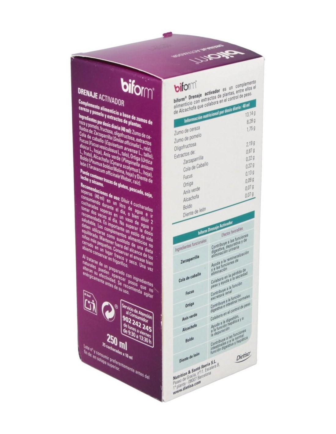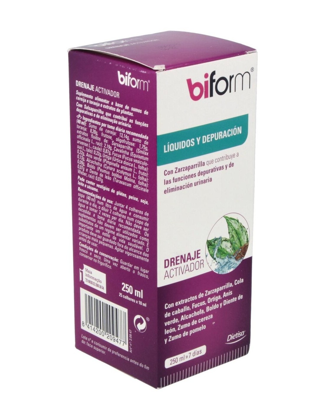 BIFORM®BIFORM | Biform Drenaje Activador 250mlBiform Drenaje Activador es un complemento alimenticio que ayuda a controlar el peso y eliminar los líquidos del organismo, por lo que es ideal para personas que realicen dietas de control de peso o tengas problemas de retención de líquidos. Gracias a Biform podrás seguir un etilo de vida saludable y obtener el peso que deseabas en poco tiempo ya que sus productos contienen propiedades que permiten absorber las grasas ingeridas y reducir el ap.