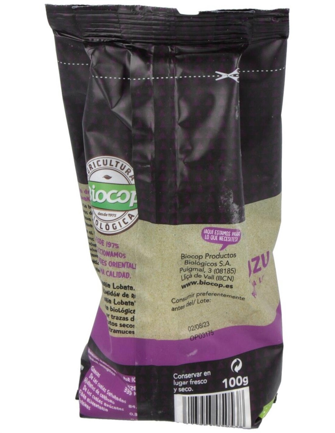 BIOCOPIngredientes:Almidón de raíz de kuzu (Pueraria Lobata)*. (*) De cultivo ecológico.Valor nutricional por 100 gramos: