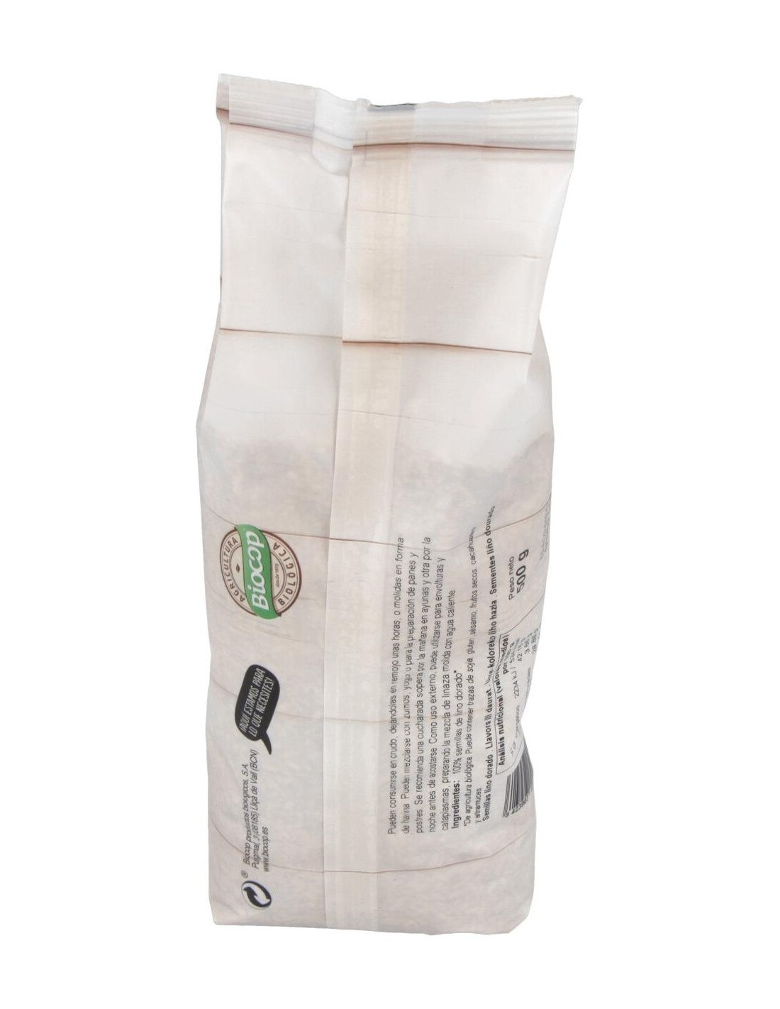 BIOCOPIngredientes:Semillas lino dorado*. (*) De cultivo ecológico.Valor nutricional por 100 gramos: