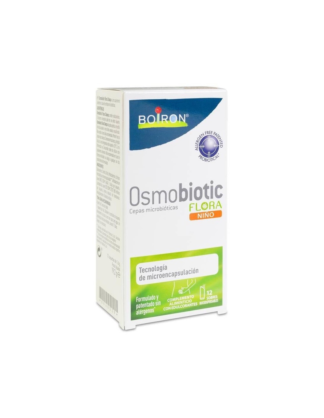 BOIRONOsmobiotic Flora Niño es un complemento alimenticio con edulcorantes a base de cepas microbióticas, que cuenta con Tecnología de microencapsulación. Formulado y patentado sin alérgenos. Presentado en sobre bucodispersables con sabor a frambuesa. A partir de 3 años.