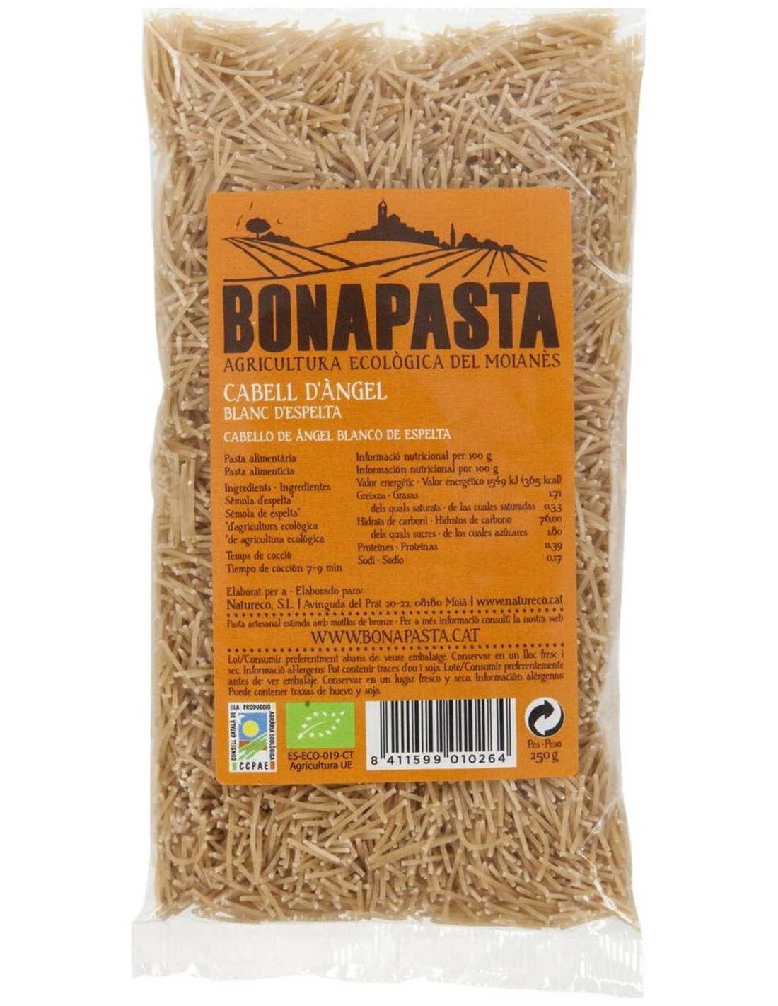 Fideos Finos De Espelta Blancos 250 gramos Eco de Bonapasta