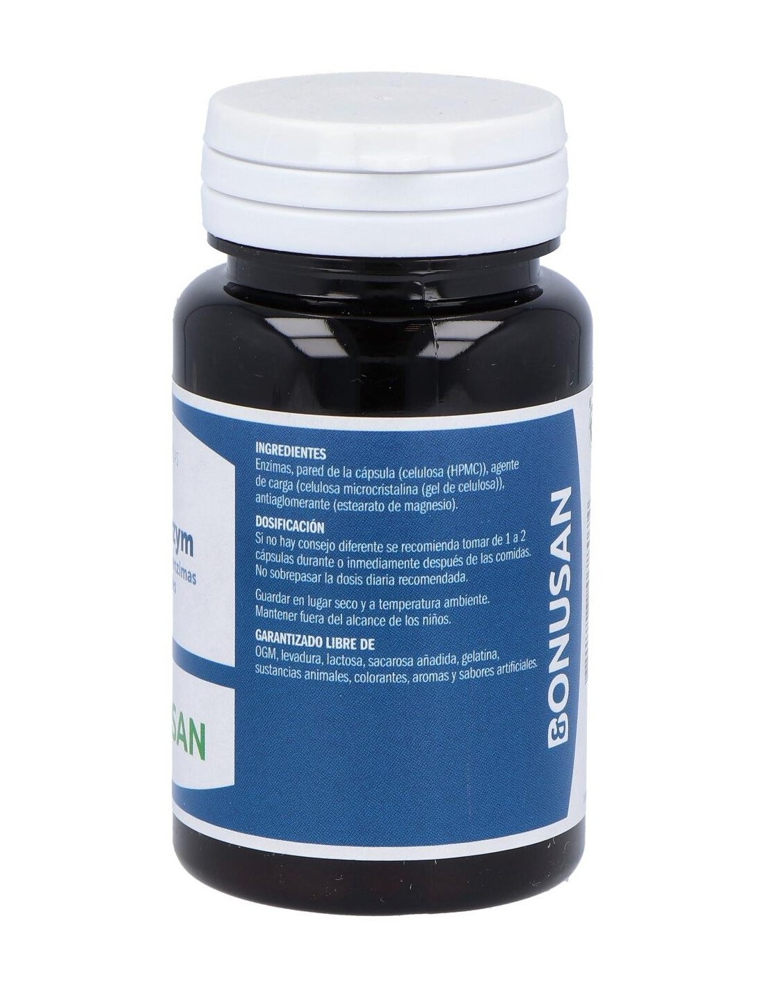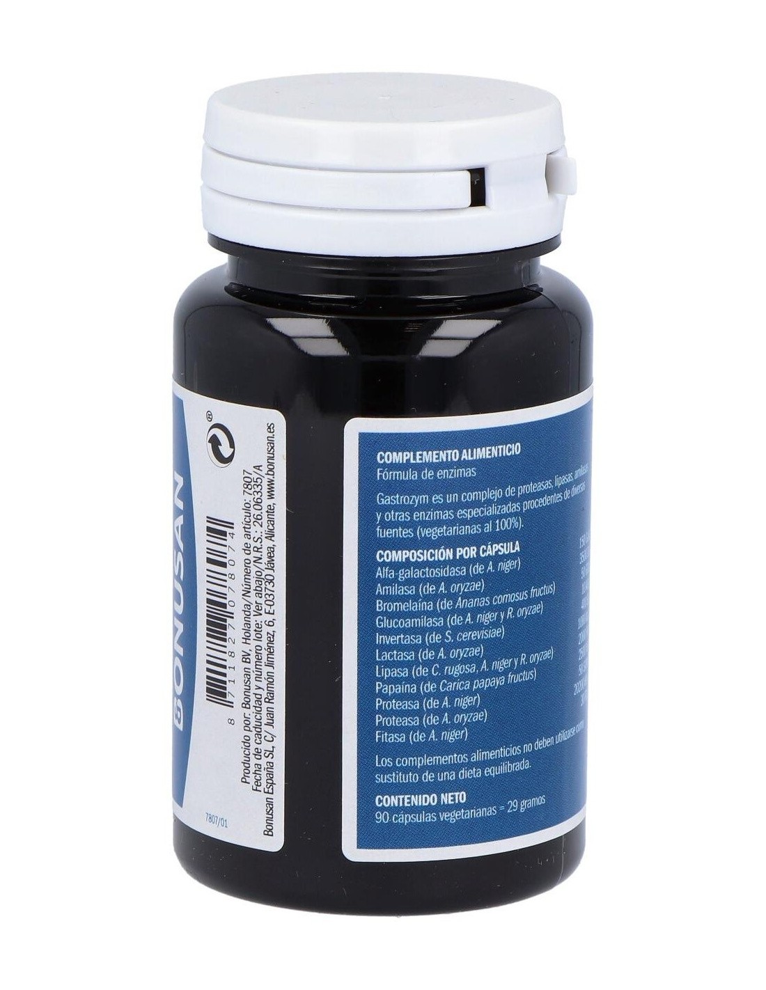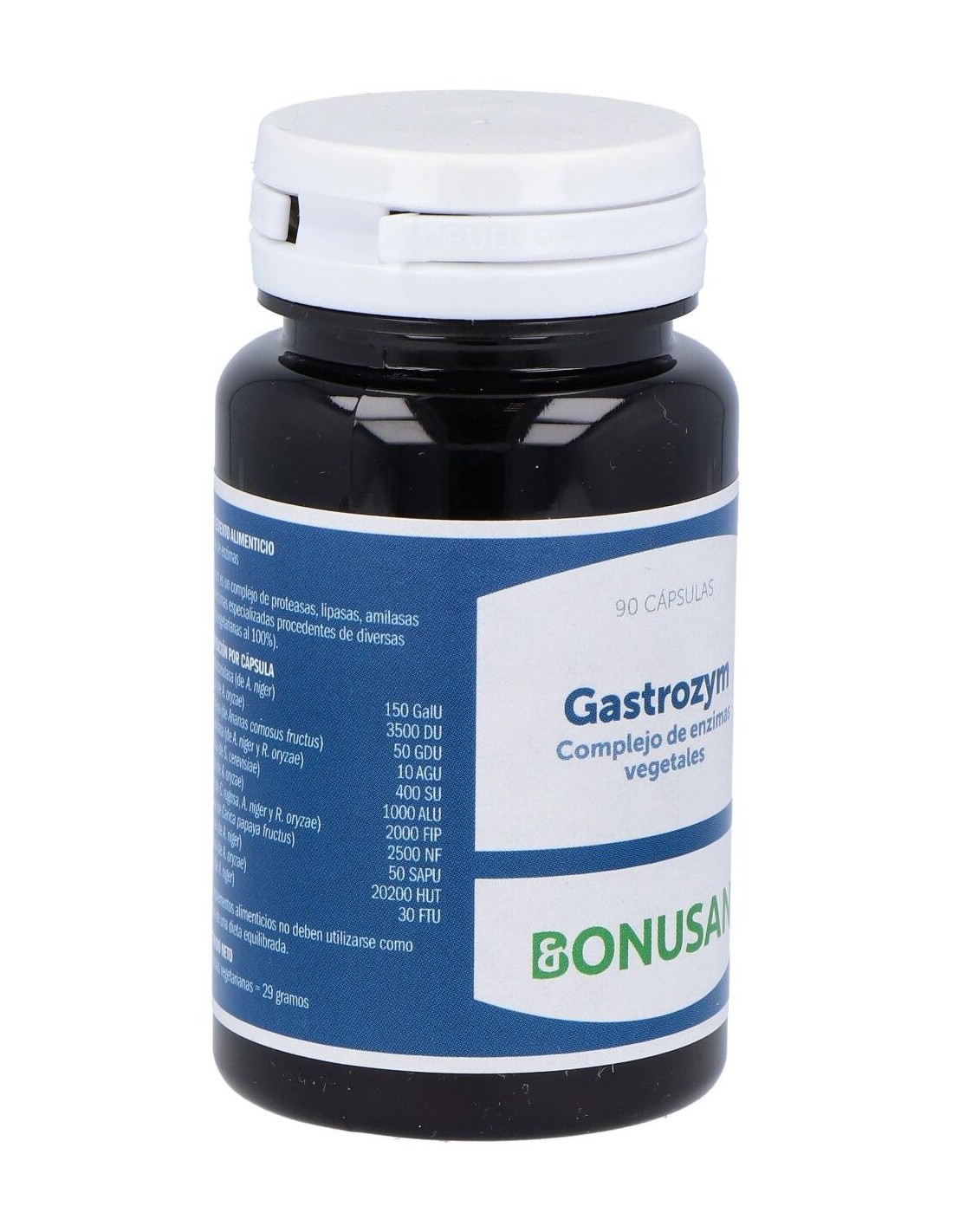 Gastrozym de Bonusan es un complejo amplio de enzimas que sólo contiene enzimas vegetarianas que son activas durante más tiempo, incluyendo la lipasa, proteasa y amilasa. Gastrozym también contiene lactasa, una enzima que se ha demostrado que es eficaz en la mejor digestión de la lactosa en personas que tienen problemas con ésta. Teniendo en cuenta el carácter global de su composición, este producto es especialmente adecuado para personas con necesidades específicas en términos de digestión.