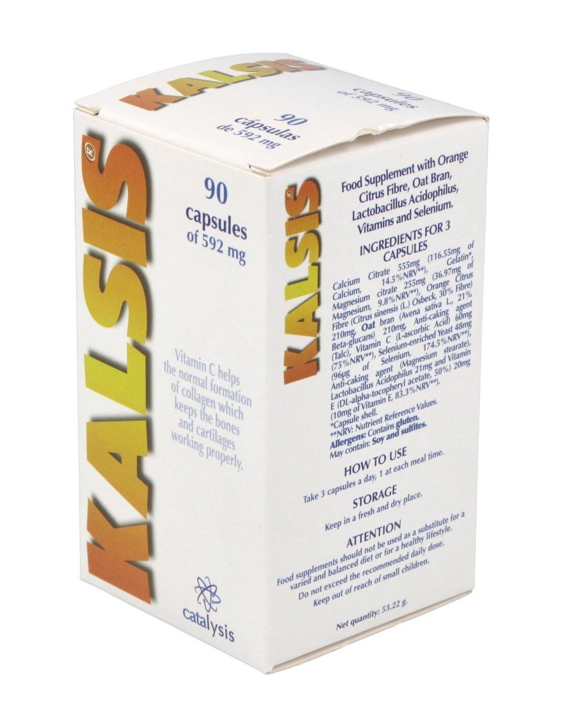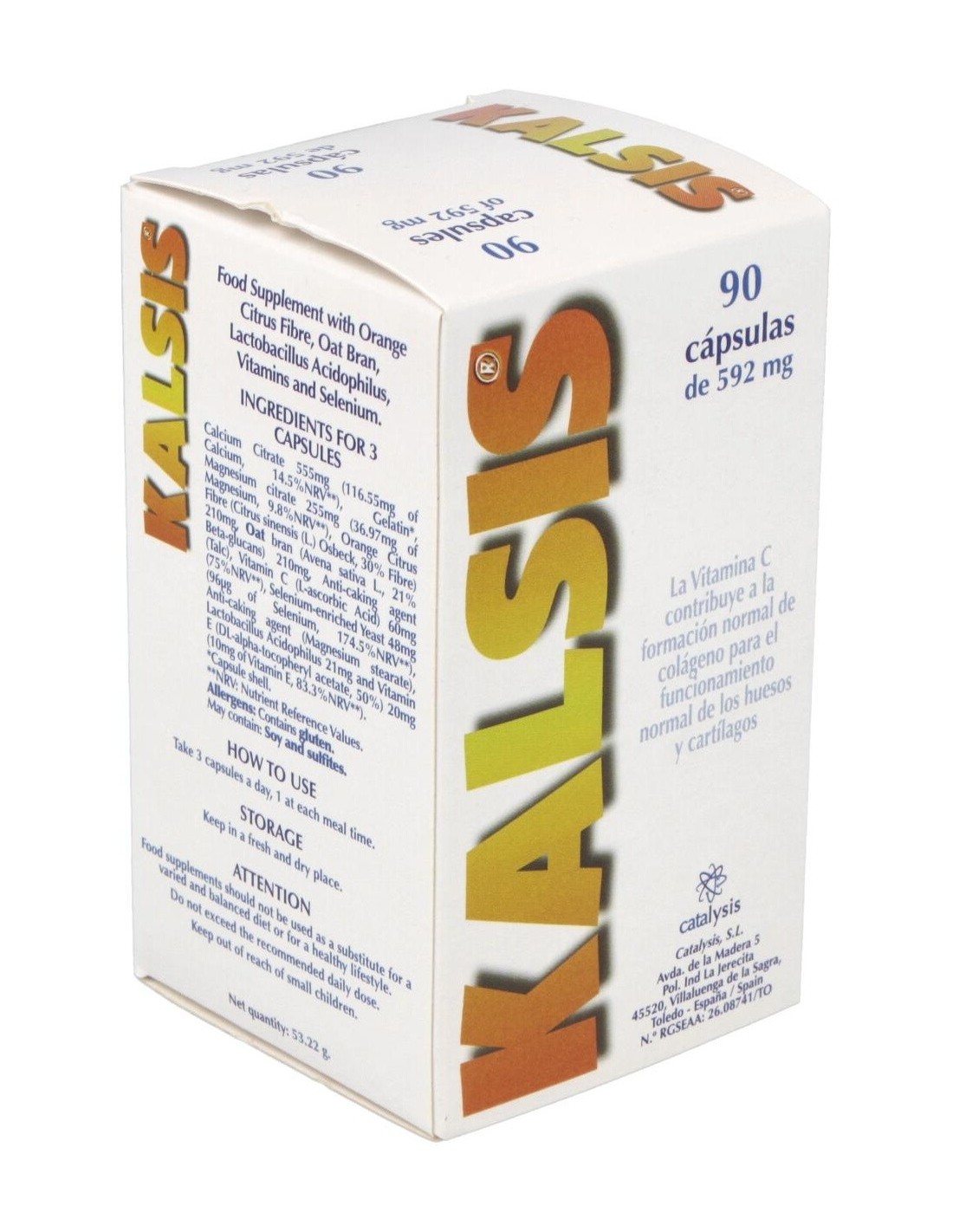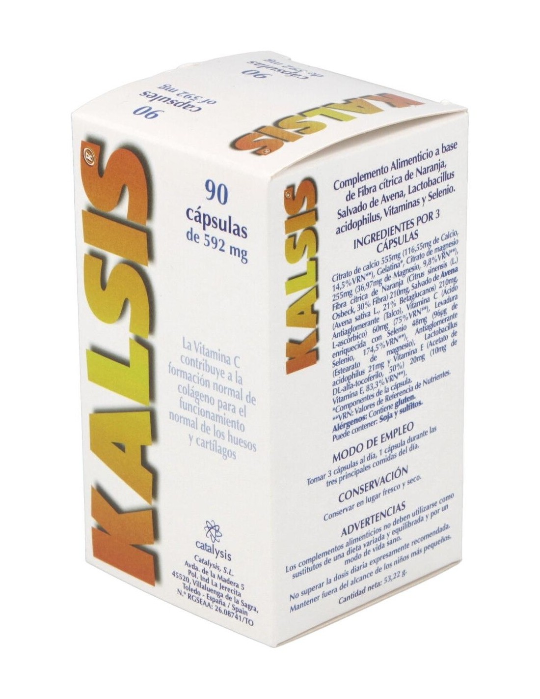 CATALYSISSuplemento alimenticio que aporta nutrientes como vitaminas y minerales. La vitamina C contribuye a la formación normal de colágeno para el funcionamiento normal de huesos y cartílagos.