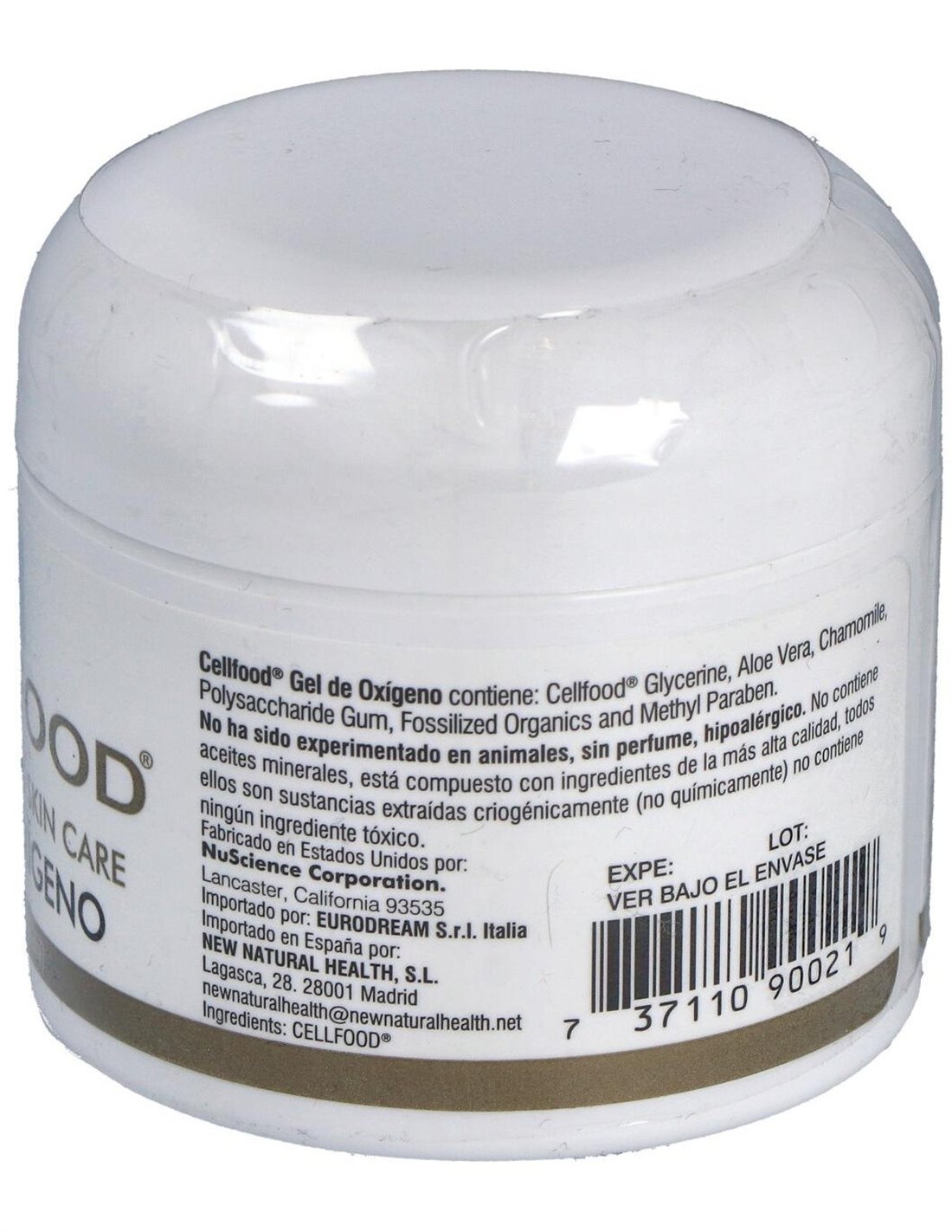 Cellfood, Aloe vera, camomilla, glicerina, sustancias orgánicas fósiles.