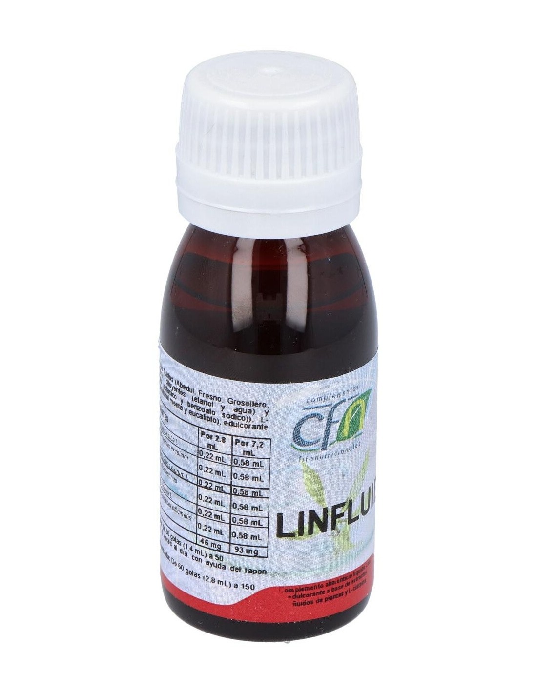 CFNLinfluid (Linfodren) 60Ml. de Cfn es un complemento para personas que buscan apoyar el bienestar circulatorio. Facilita la sensación de ligereza gracias a su fórmula específica para el drenaje linfático.