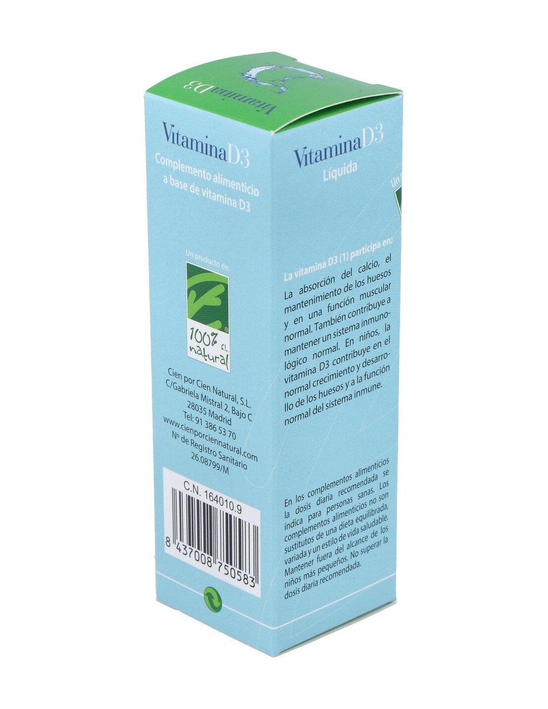 CIEN POR CIEN NATURALLa vitamina D3 (también conocida como calciferol) es una vitamina soluble en grasa que se puede obtener a través de la dieta o por una exposición adec