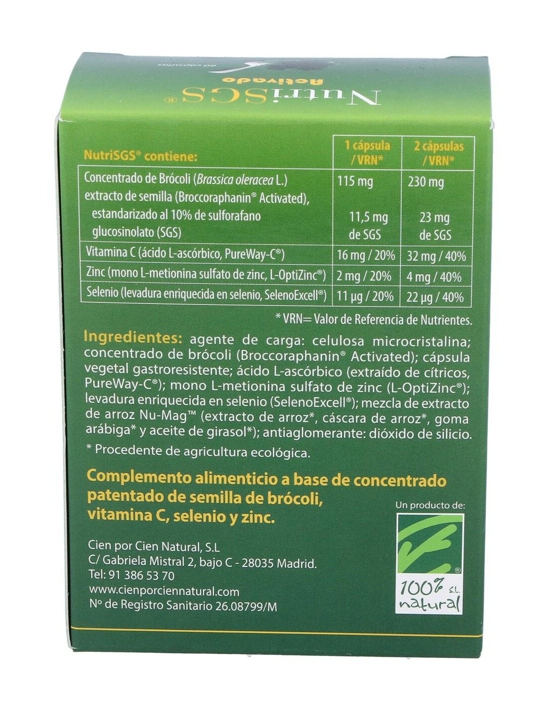 Nutrisgs Activado 60Cap. de Cien Por Cien Natural