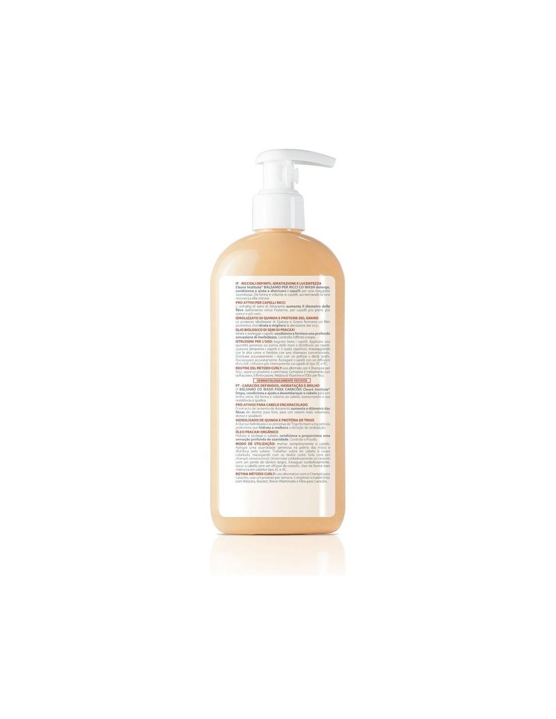 CLEARE INSTITUTEEl bálsamo Co-Wash Curly de Clearé Institute®, limpia, acondiciona y ayuda a desenredar el cabello aportando un extra de brillo. Proporciona forma y volumen al cabello aumentando su resistencia a la rotura. El amaranto de su composición reconstruye la estructura interna del cabello aportando volumen y brillo. Reduce la fricción entre las cutículas evitando el encrespamiento y favoreciendo al movimiento natural del cabello.