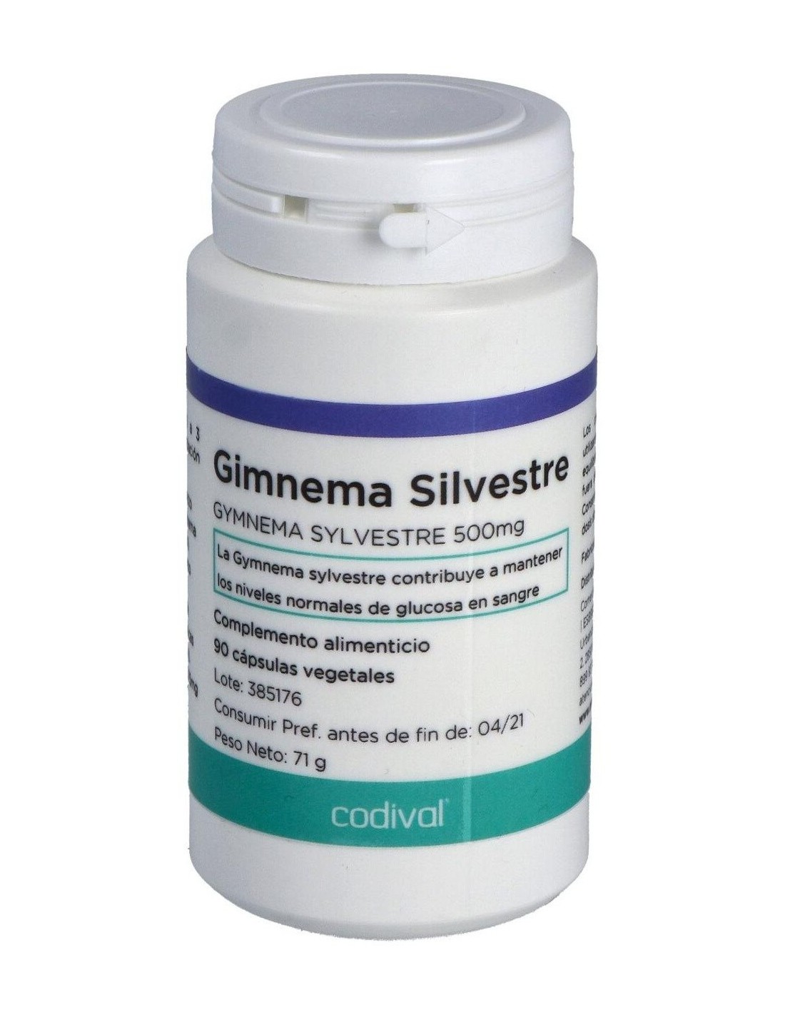 CODIVALComplemento alimenticio a base de Gymnema Sylvestris que contribuye al mantenimiento de unos niveles saludables de glucosa en sangre.Modo de empleoTomar 1-3 cápsulas diarias, o según recomendación profesional.