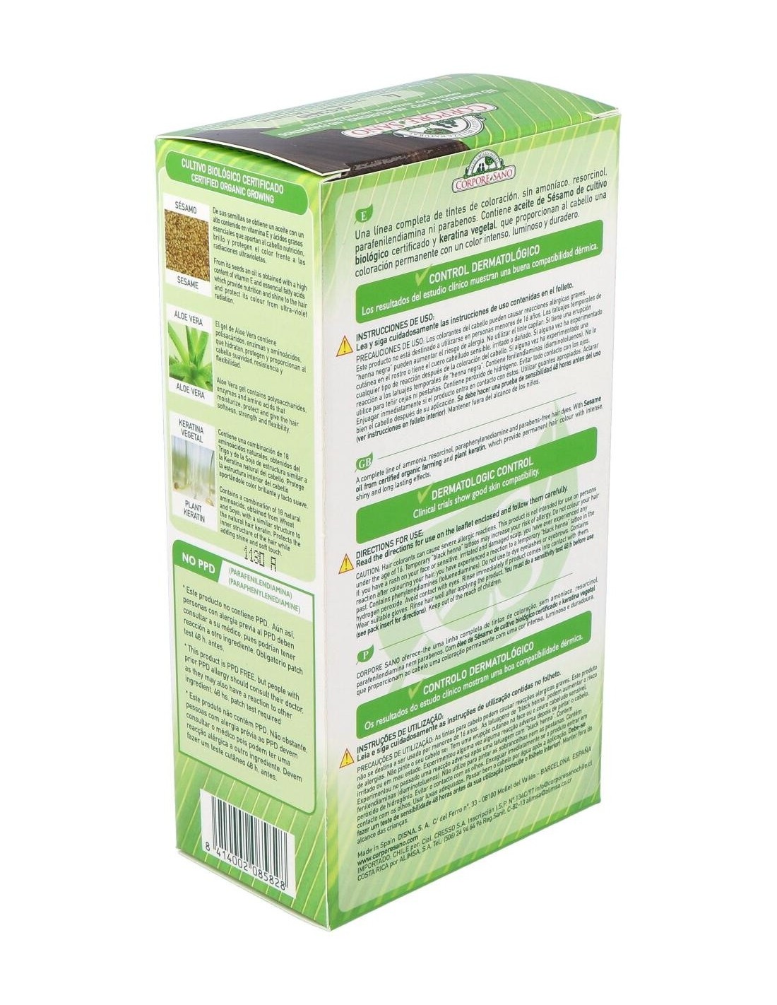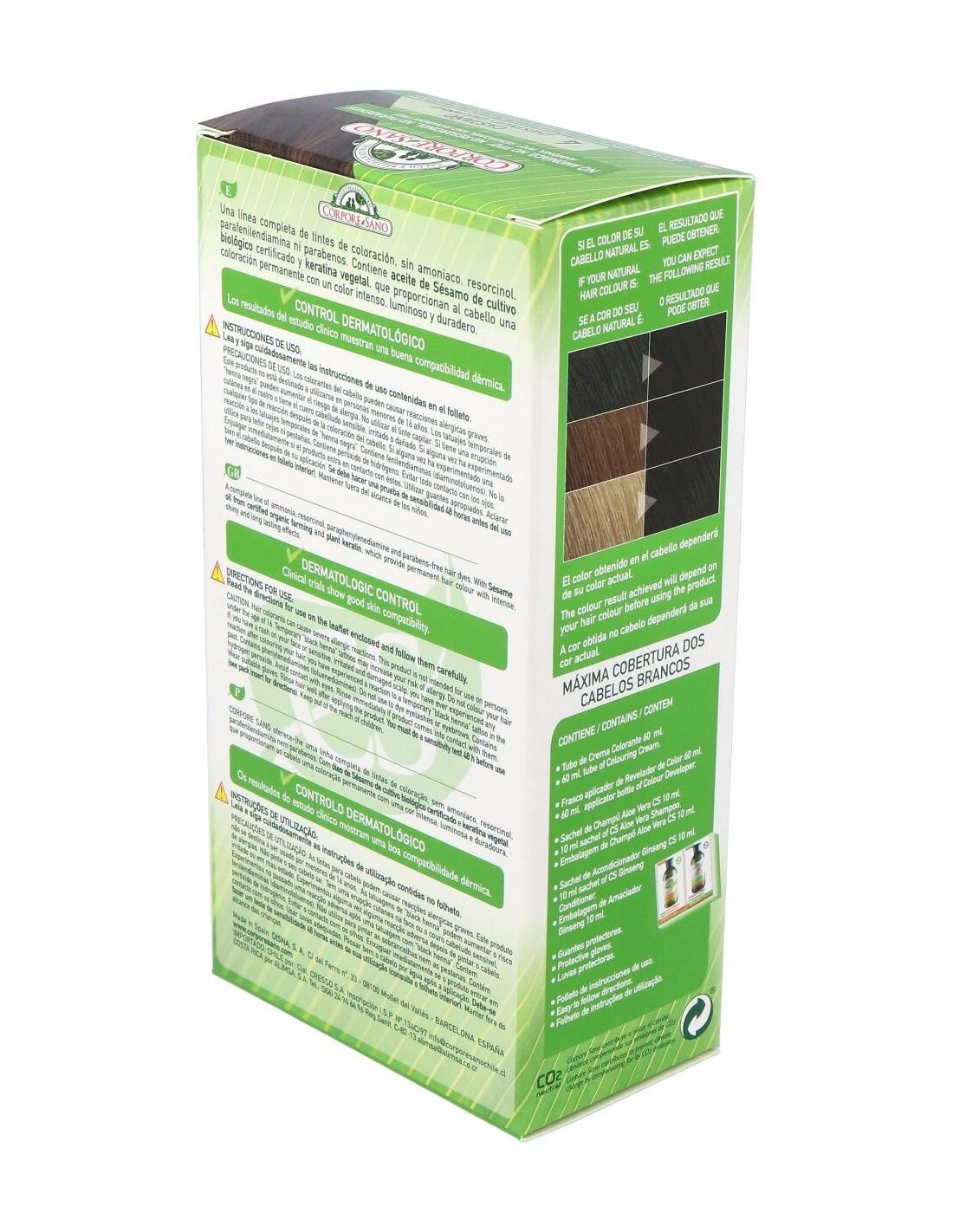 CORPORE SANOEl Tinte Castaño (4) 140Ml. de Corpore Sano es un tinte capilar para personas que buscan cobertura uniforme. Proporciona coloración natural gracias a su fórmula equilibrada y fácil aplicación.