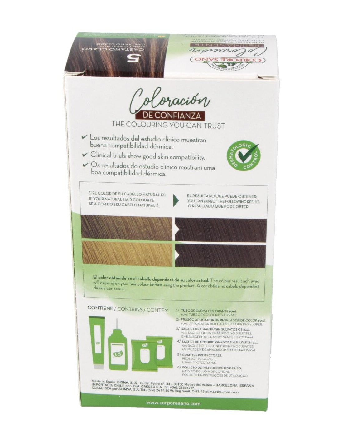 El Tinte Castaño Claro (5) 140Ml. de Corpore Sano ofrece una opción para quienes buscan un cambio de color con un producto formulado para facilitar una coloración equilibrada y respetuosa con el cabello.