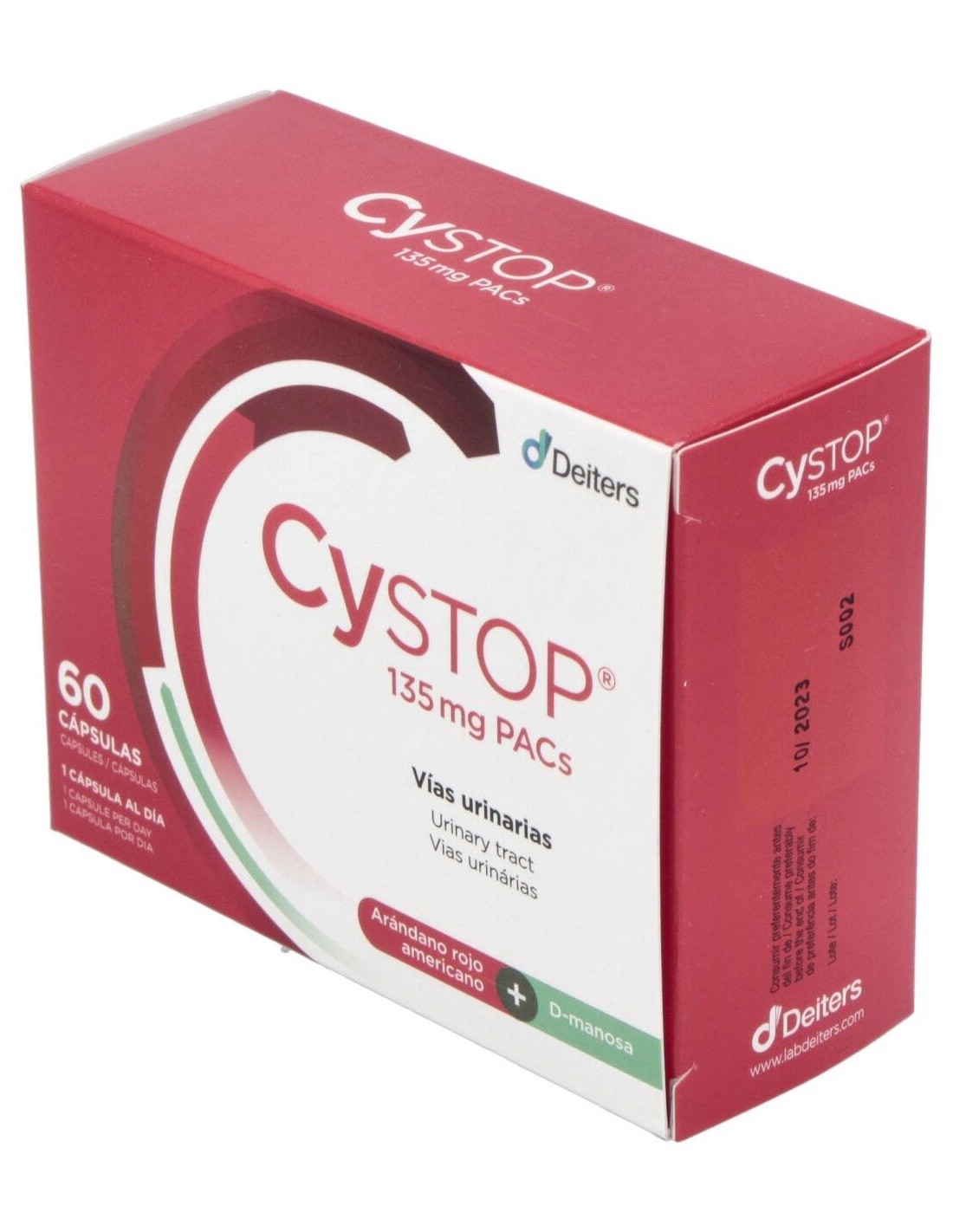 Cystop es un preparado alimenticio a base de arándano rojo americano y D-manosa, específicamente preparado para aportar a tu organismo propiedades que le ayudarán a inhibir la aparición de las molestias urinarias, prevenirlas y mejorar su bienestar tras su presencia. Gracias a su composición, Cystop permite bloquear los factores de adherencia de las bacterias en tu organismo, mejorando la protección y prevención de las molestias urinarias.