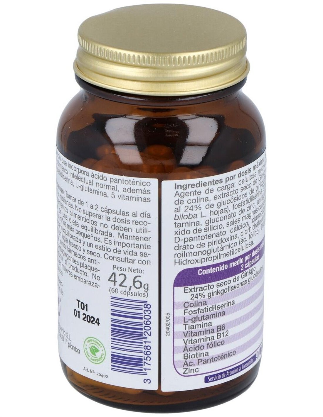 - Contiene extracto estandarizado de Ginkgo biloba, reconocido por su uso tradicional en el apoyo a la circulación sanguínea y la función cerebral.