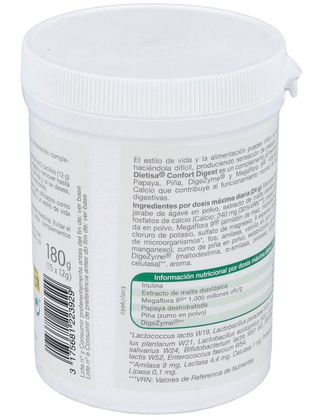- Presentación en envase de 180 gramos, suficiente para un consumo aproximado de 15 días, lo que permite un manejo cómodo y controlado de la dosis.
