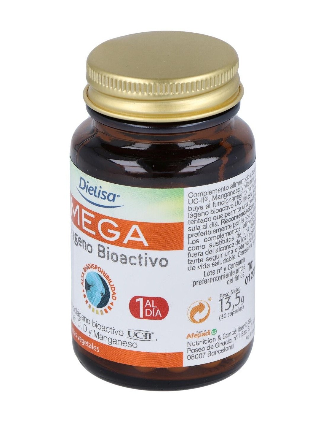 DIELISA®El Mega Colágeno Uc-Ii Envase 30 Cápsulas de Dielisa® es un suplemento para adultos que apoya la salud articular y la movilidad, gracias a su fórmula con colágeno tipo II no desnaturalizado.